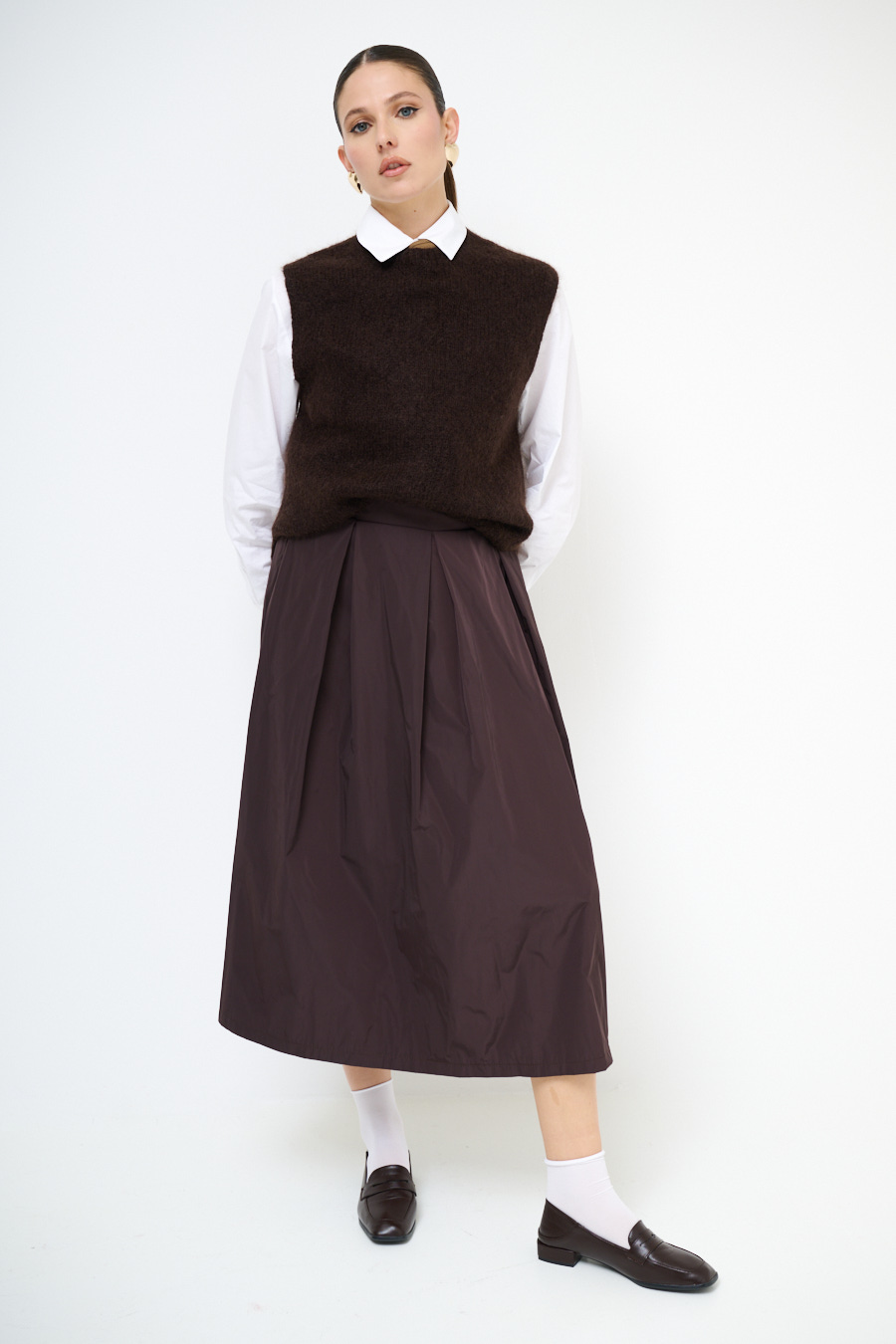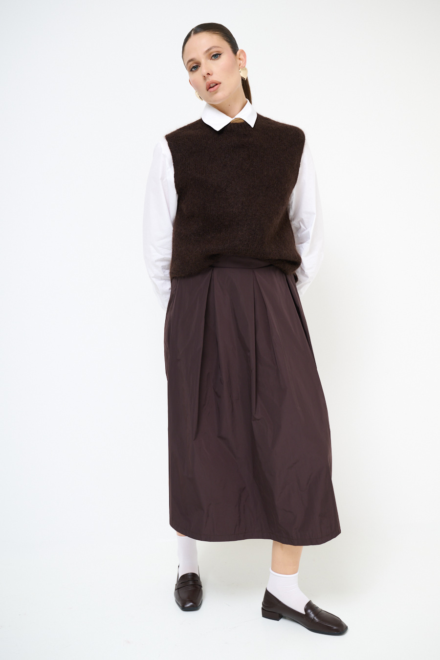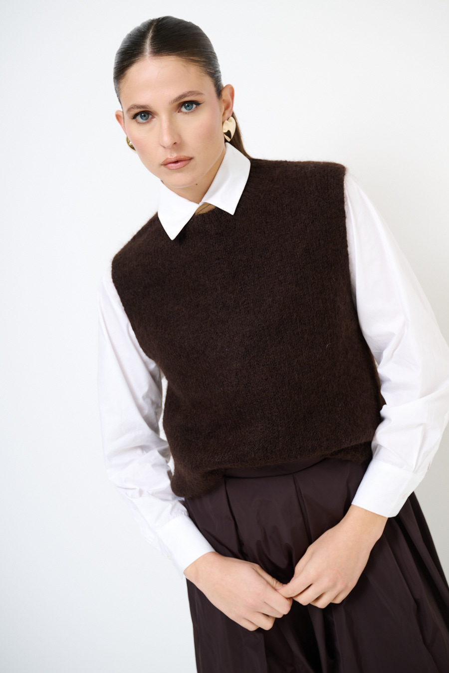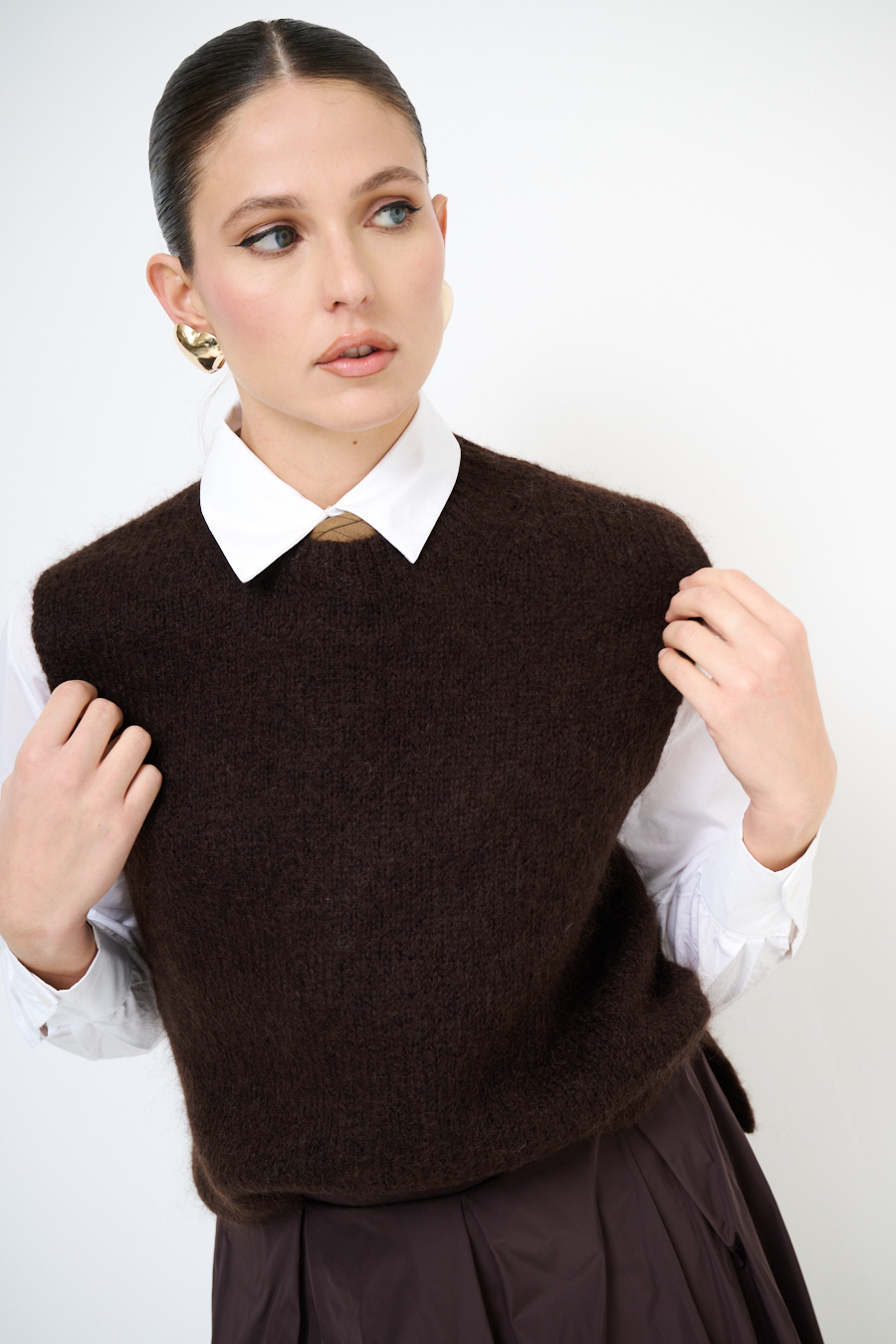 Gilet paricollo in misto mohair con spacchi laterali.