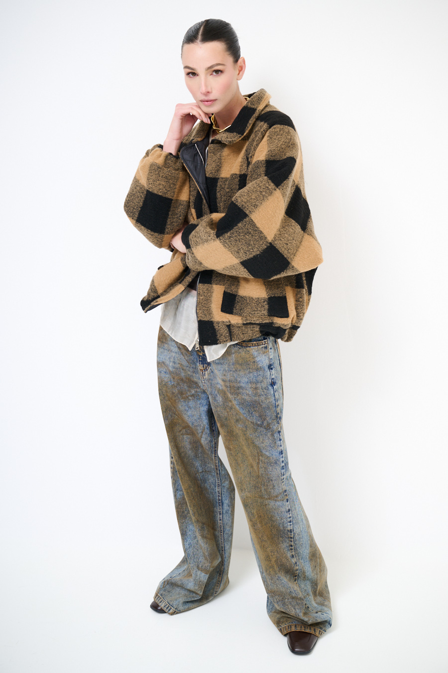 BOMBER QUADRO LANACOTTA CAMMELLO/NERO