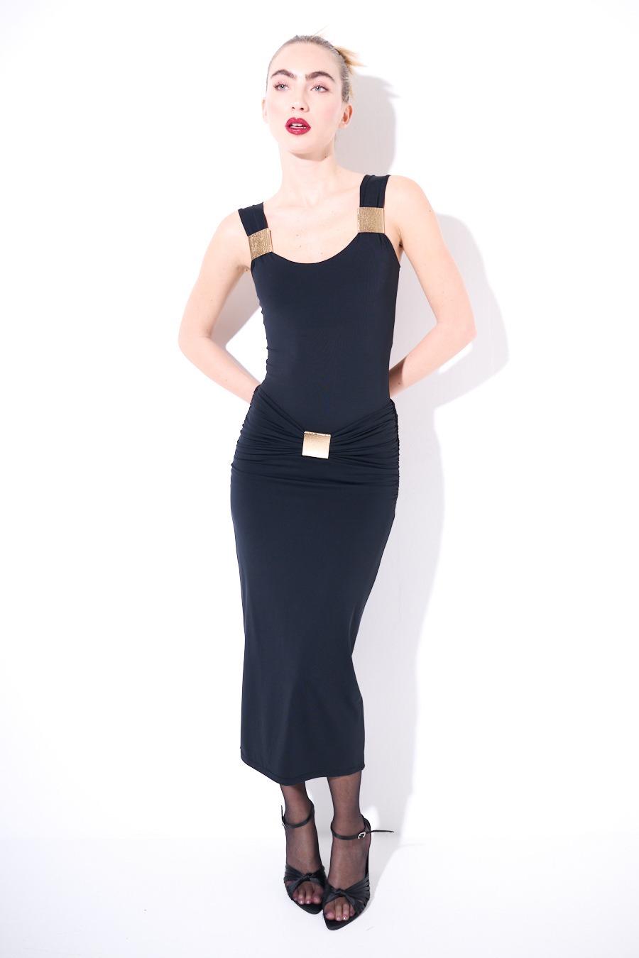 GONNA MIDI CON DETTAGLIO ORO NERO