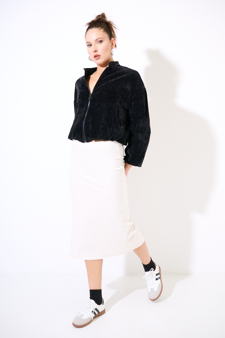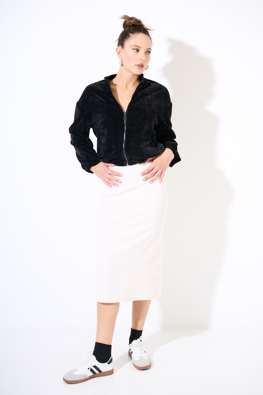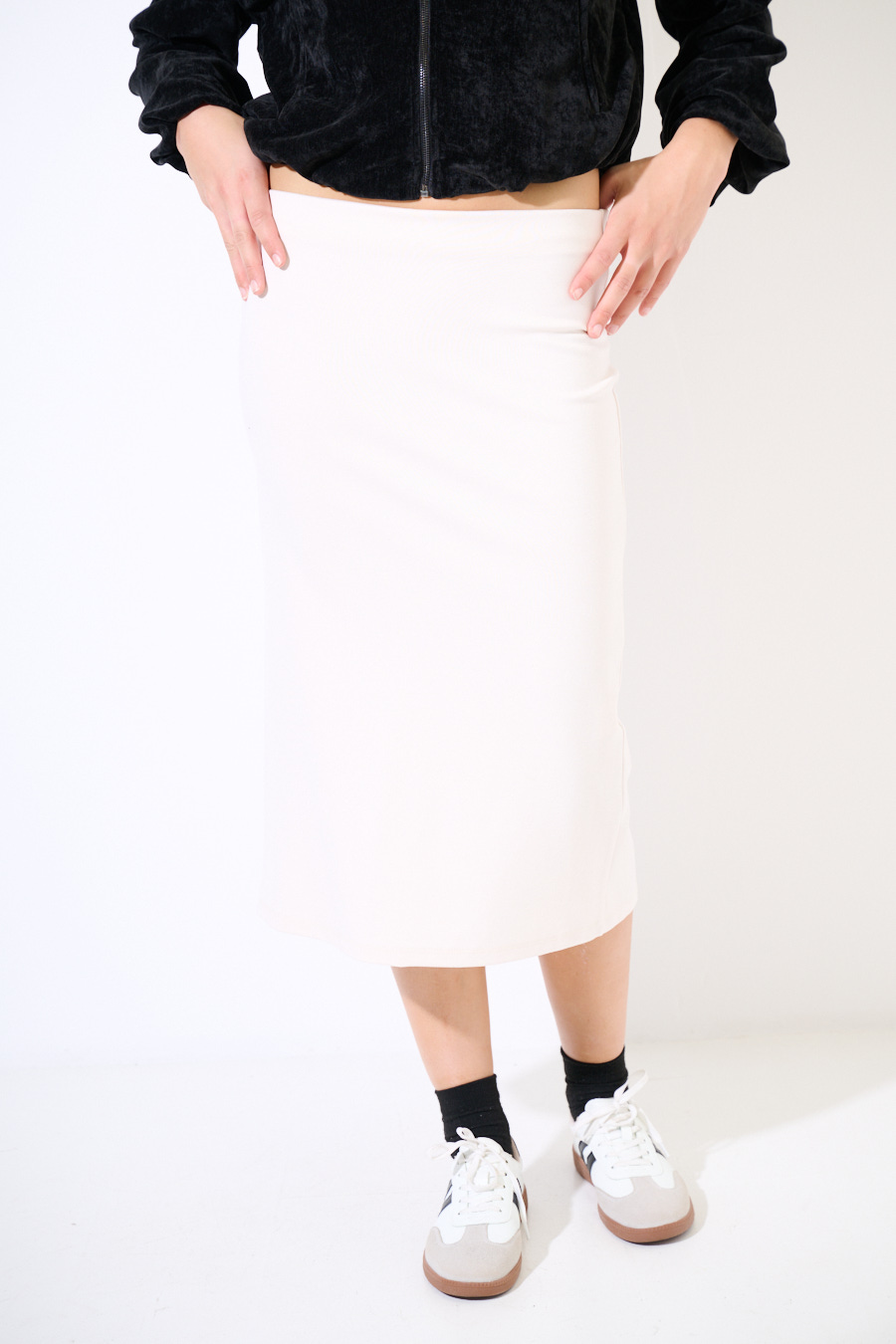 Gonna midi in viscosa a tubino con spacco sul retro, elasticizzata in vita.