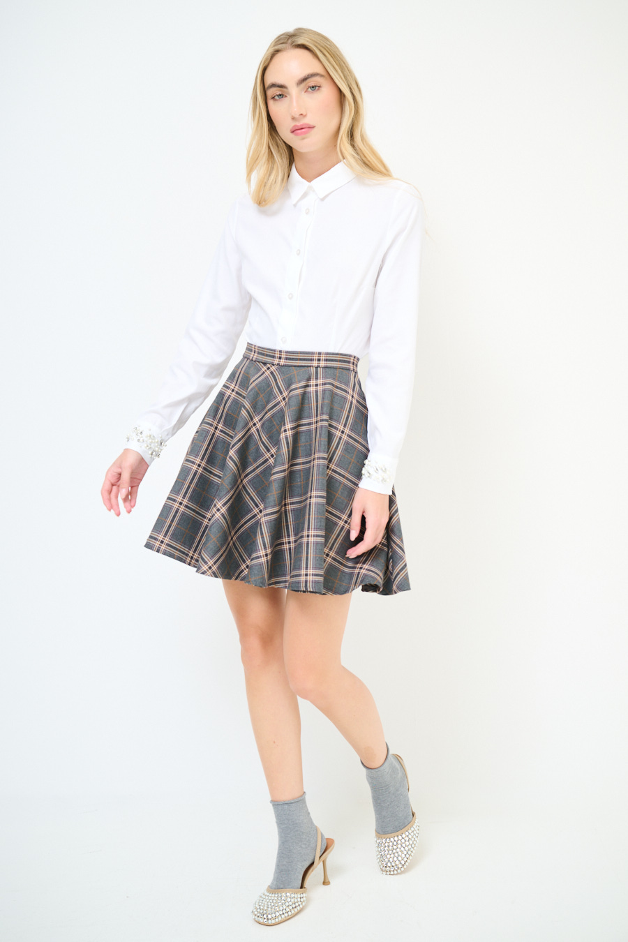 Minigonna a quadri svasata e con pieghe, con patch stile college sul lato.