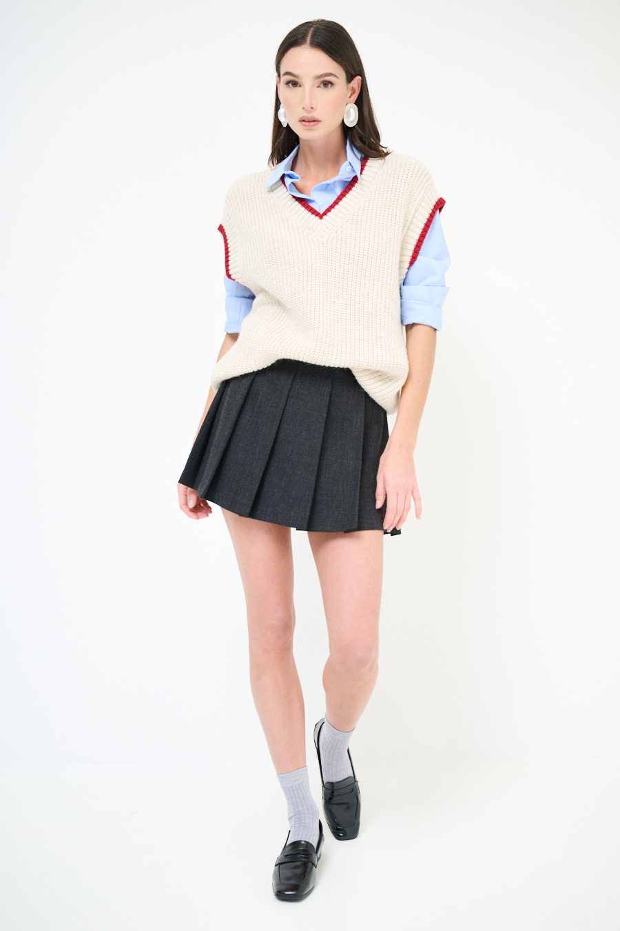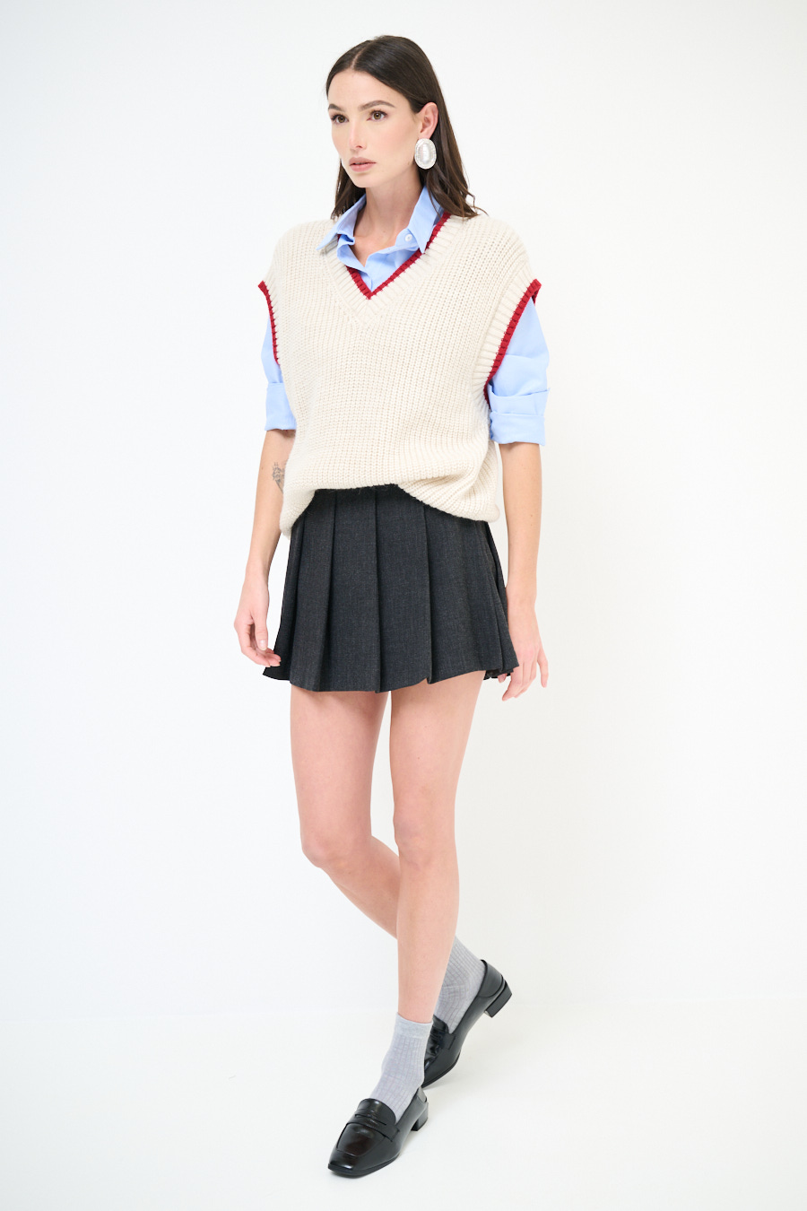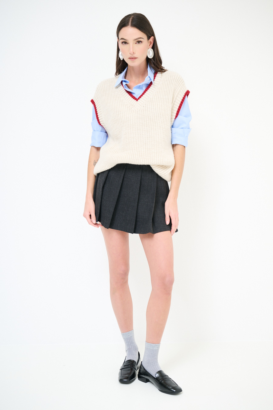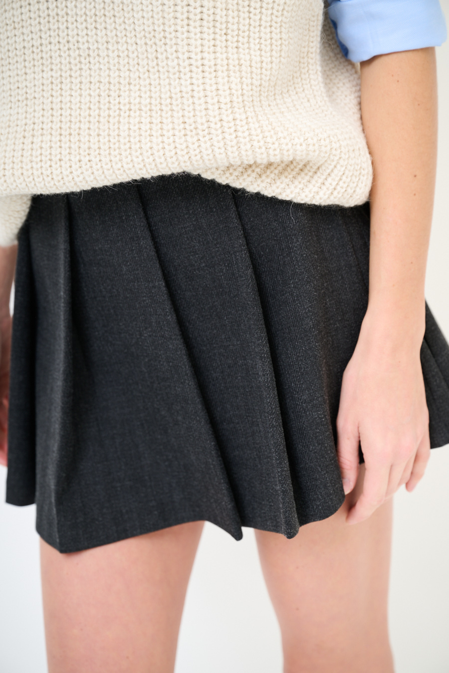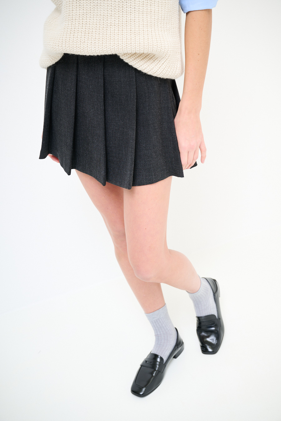 Minigonna in flanella con pieghe e chiusura con zip nascosta sul lato.