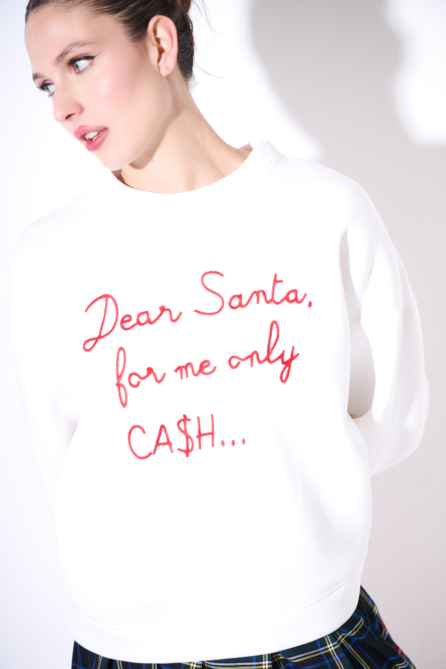 FELPA BASIC RICAMO "DEAR SANTA" PANNA