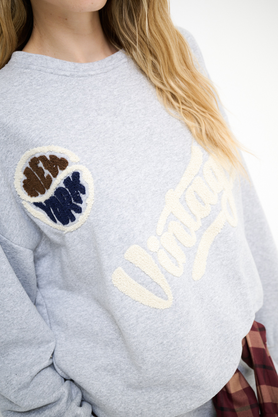 FELPA BASIC RICAMO NEW YORK VINTAGE GRIGIO