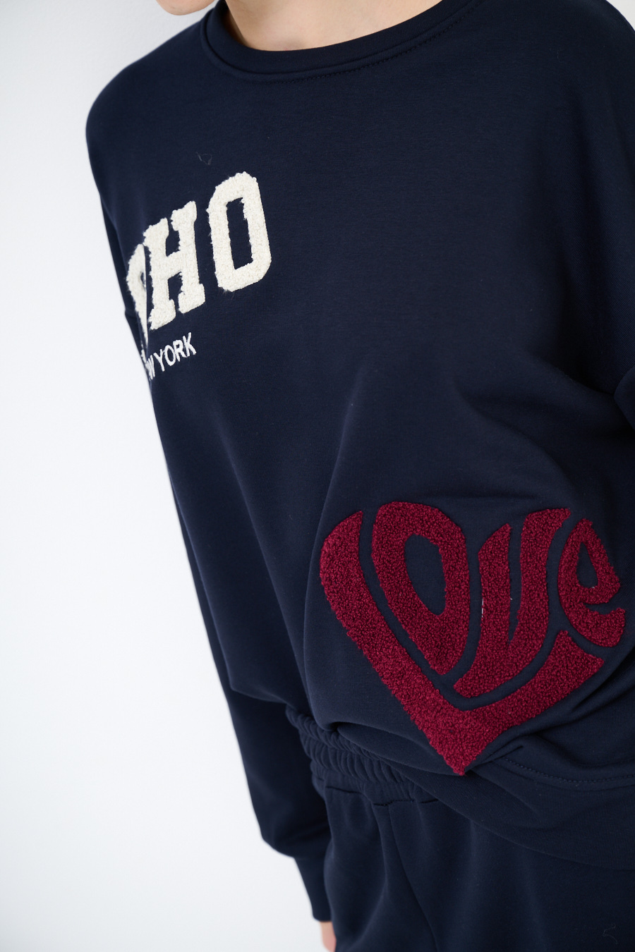 FELPA BASIC RICAMO SOHO LOVE BLU