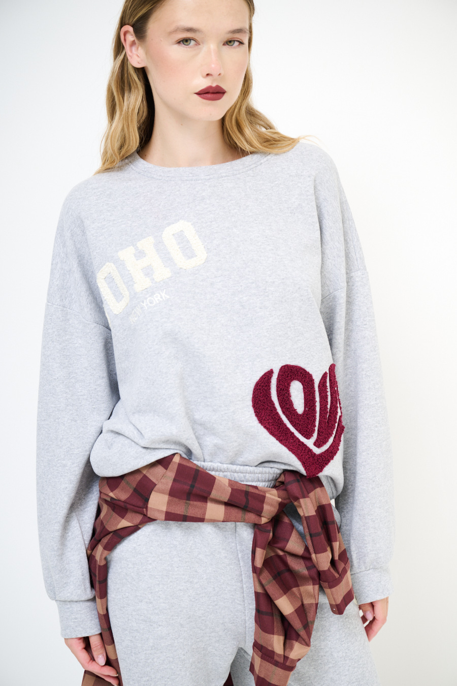 FELPA BASIC RICAMO SOHO LOVE GRIGIO