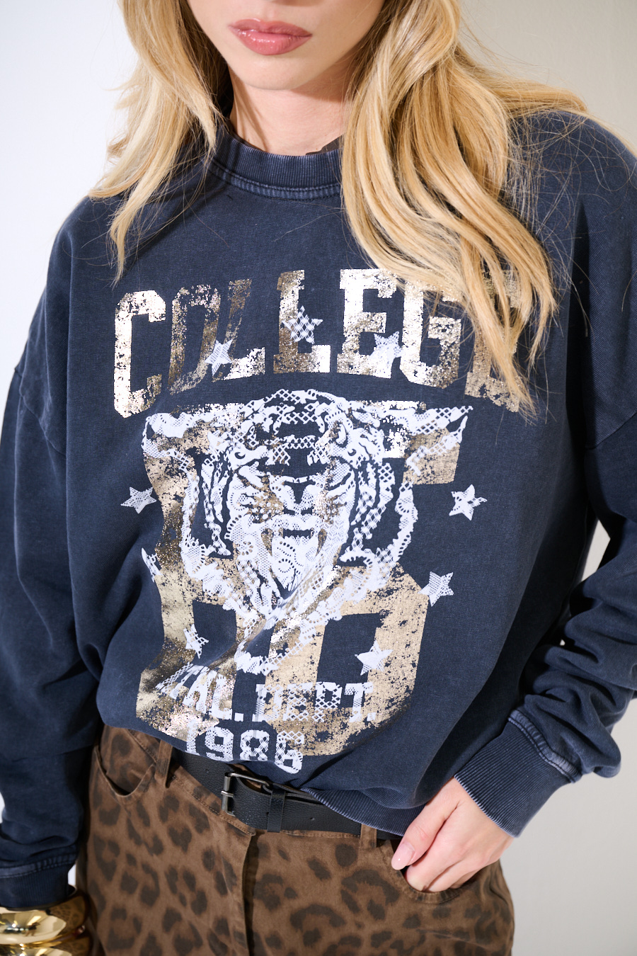 FELPA COLLEGE TIGRE VINTAGE GRIGIO