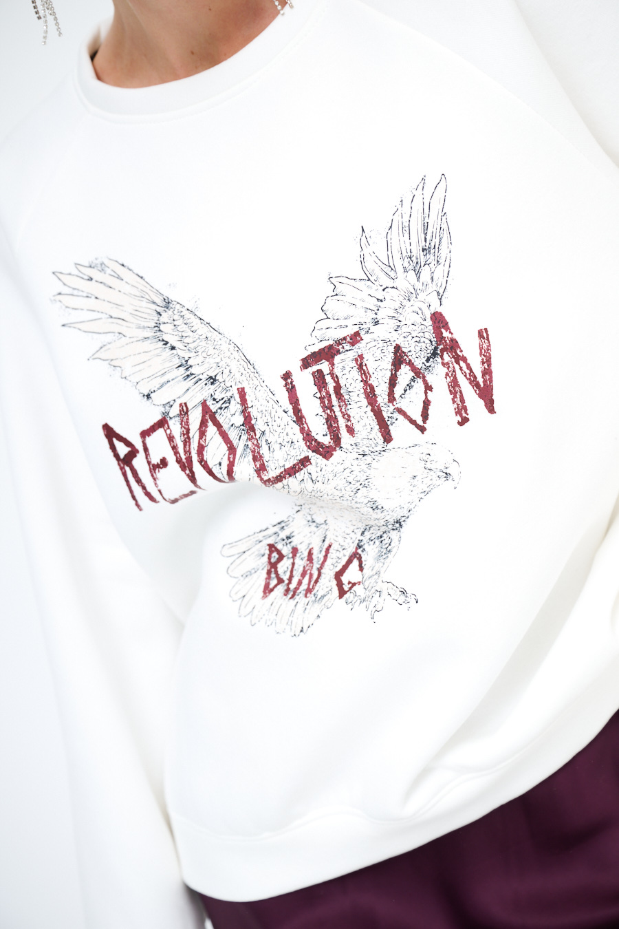 Hoodie over paricollo warm, felpata internamente, con stampa aquila, con spalla calata.