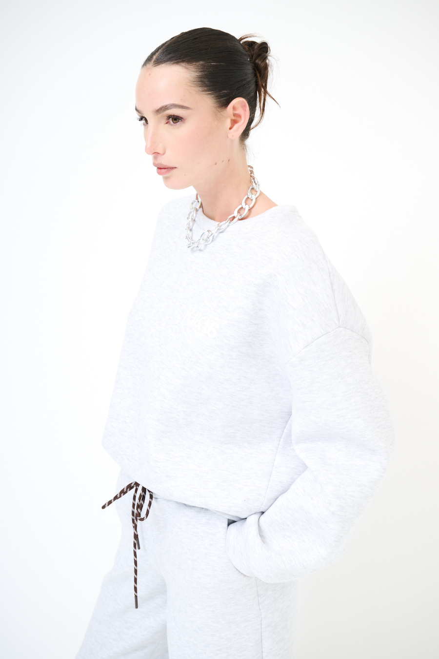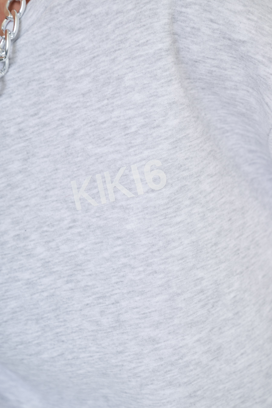 Hoodie a ovetto paricollo warm, felpata internamente, con stampa KIKI6 frontale, con spalla calata.