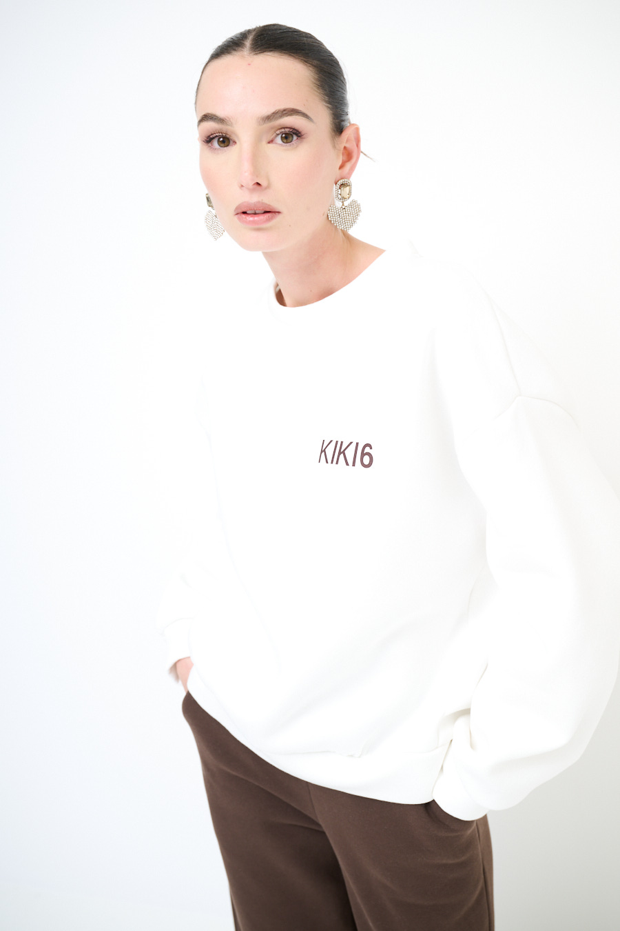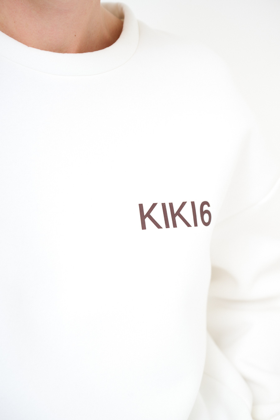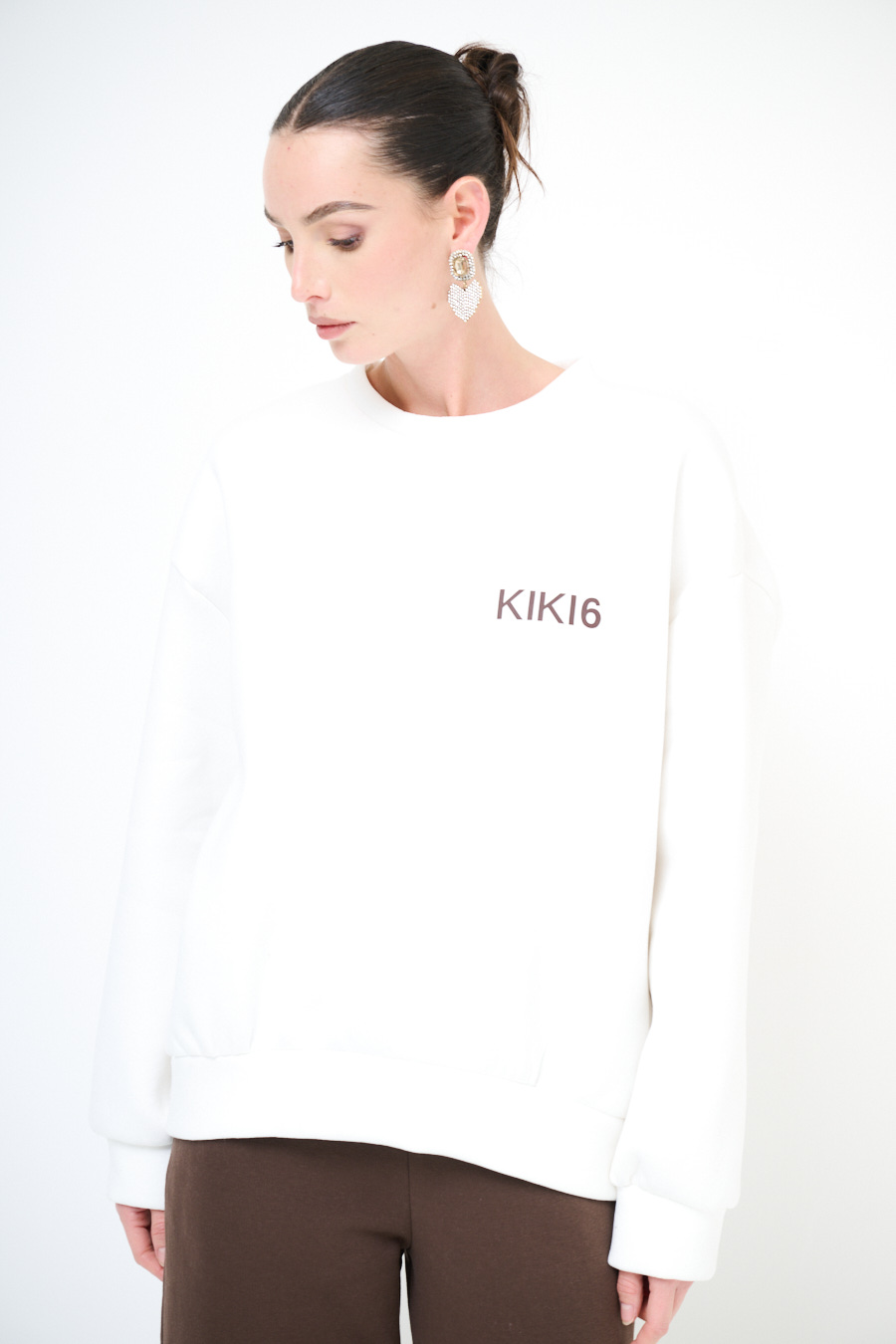 Hoodie a ovetto paricollo warm, felpata internamente, con stampa KIKI6 frontale, con spalla calata.