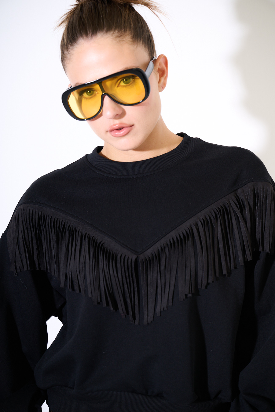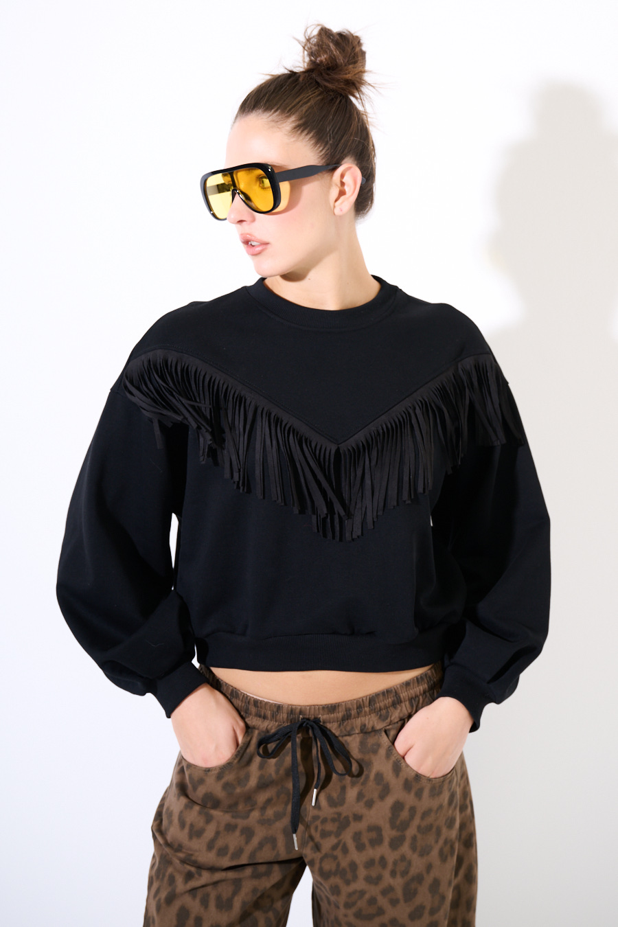 FELPA FRANGE DAVANTI DAINETTO NERO