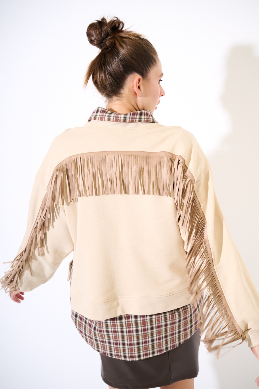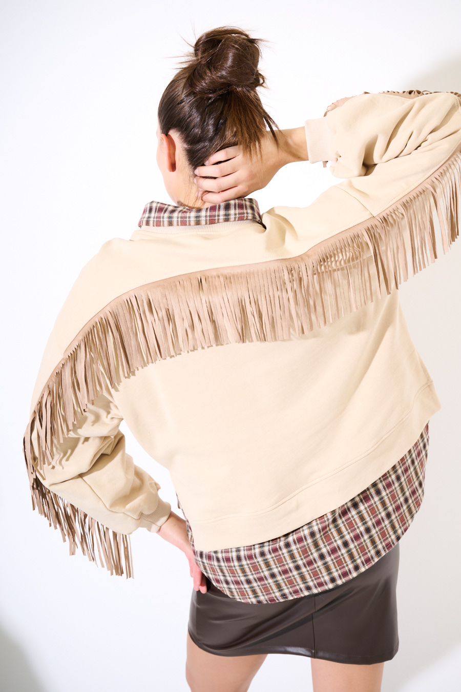 FELPA FRANGE DIETRO DAINETTO BEIGE