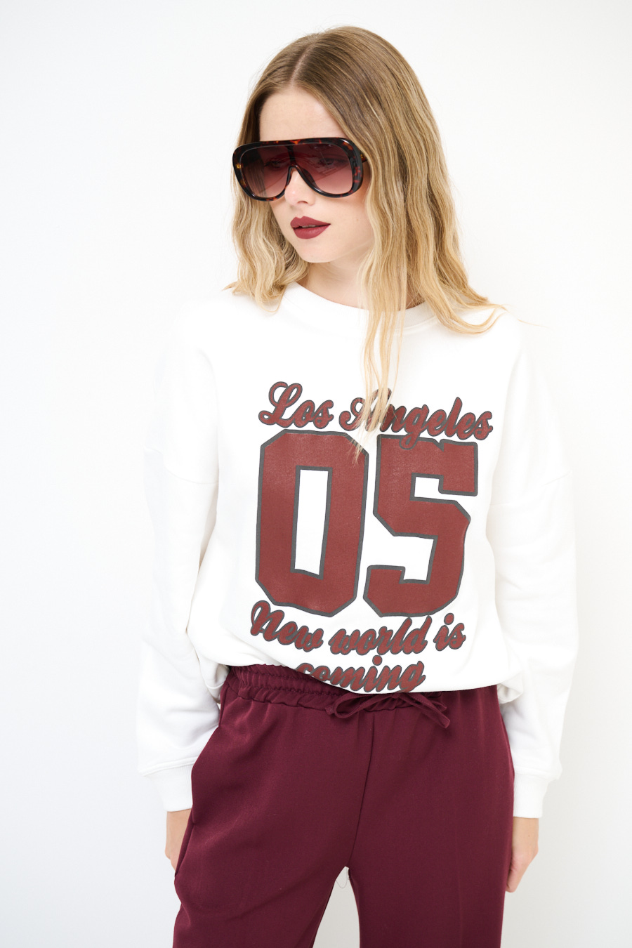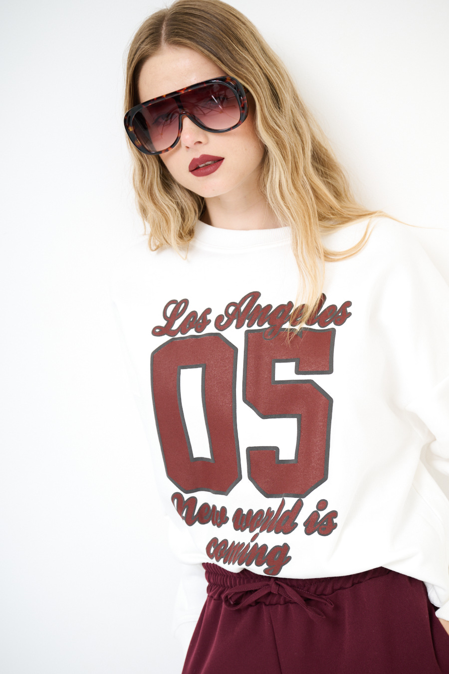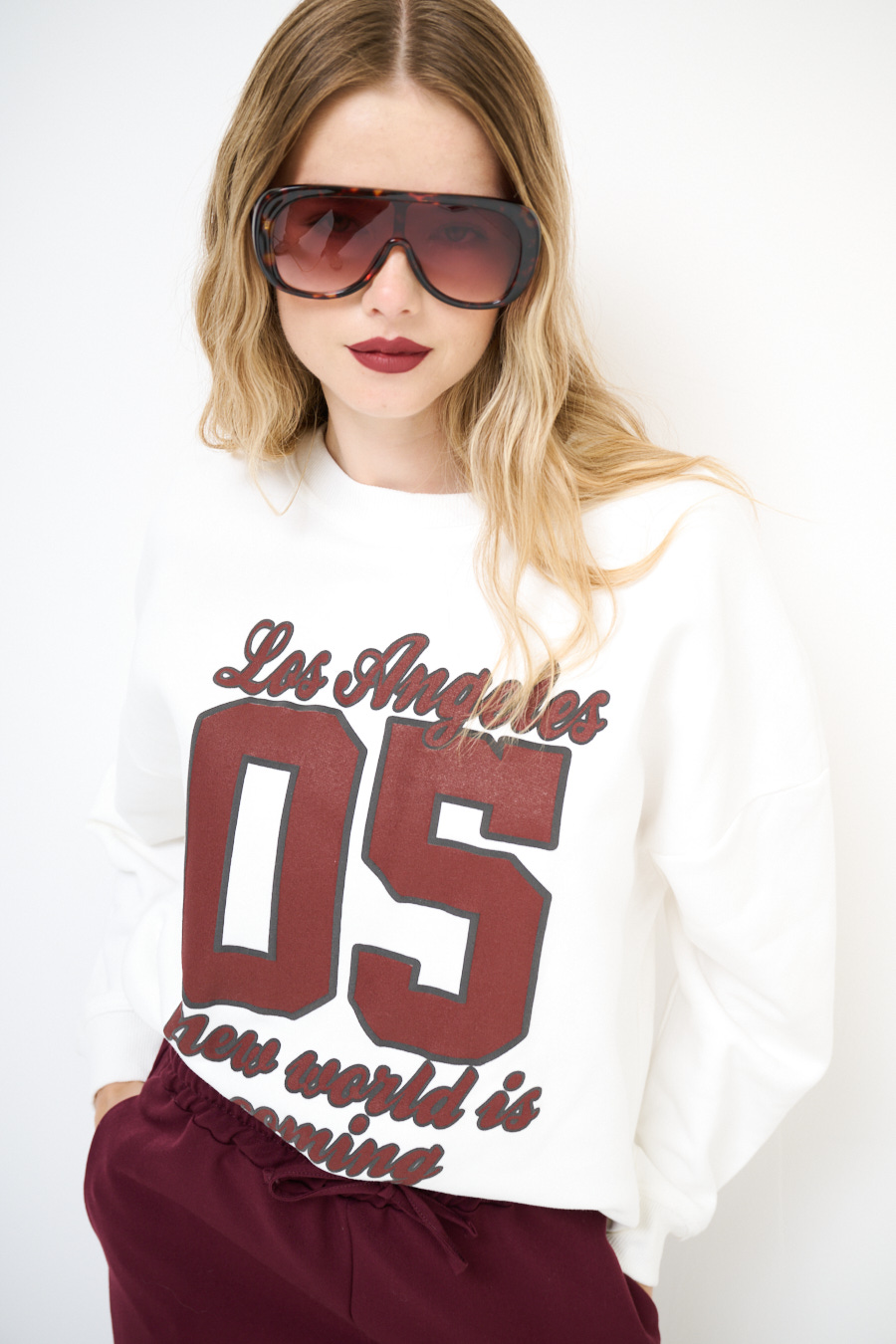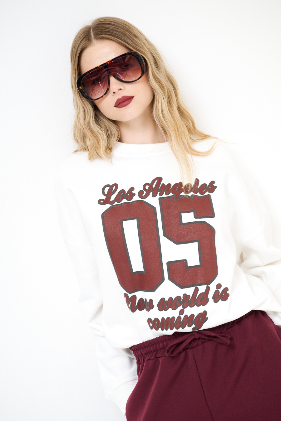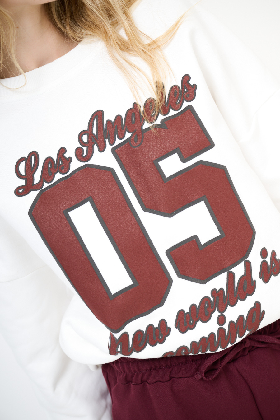Felpa oversize con spalla calata, stampa Los Angeles e felpata internamente.