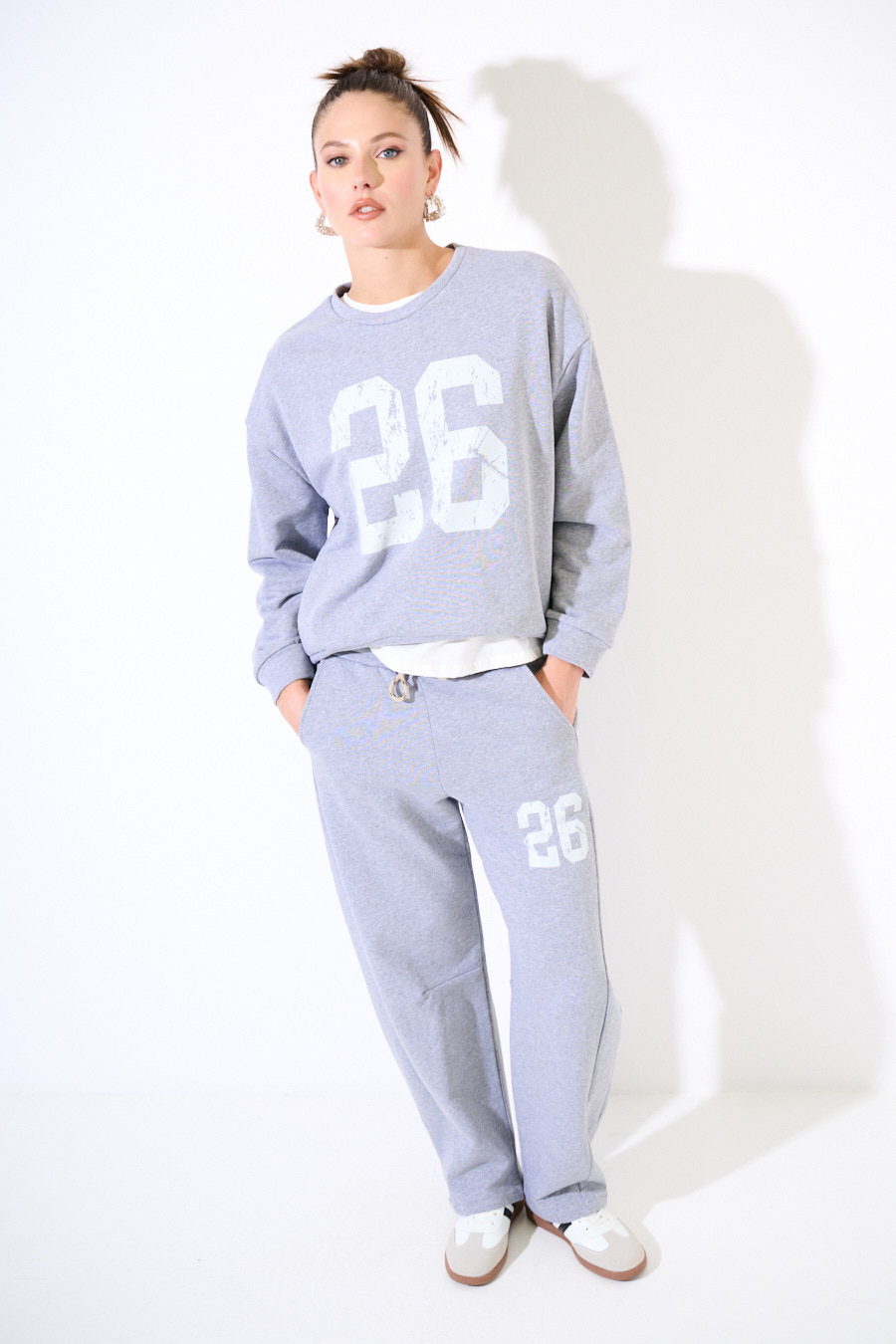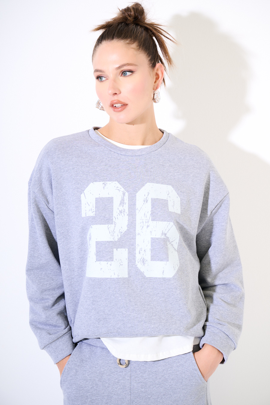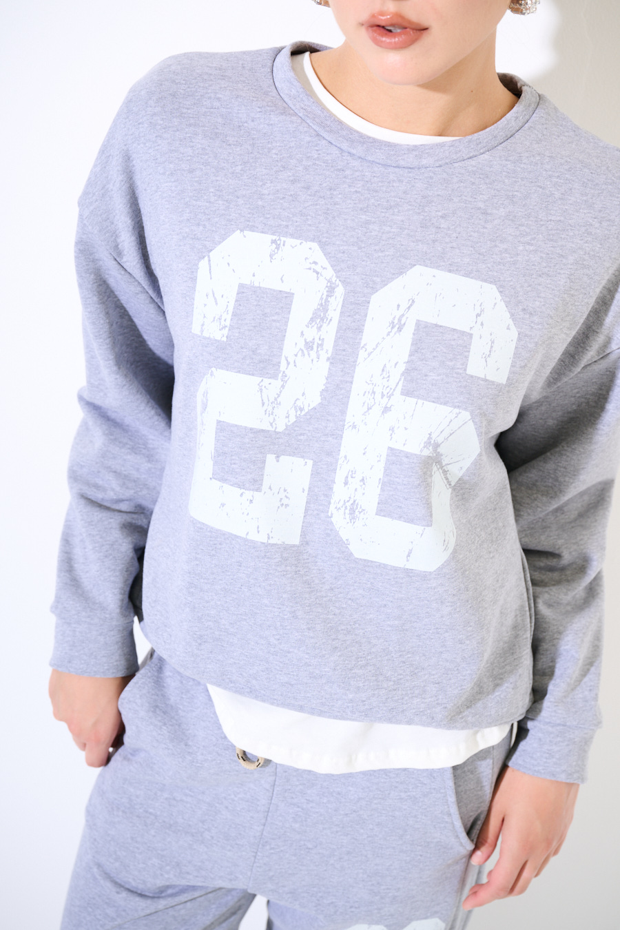 FELPA OVETTO OVERSIZE STAMPA NUMERO 26 GRIGIO