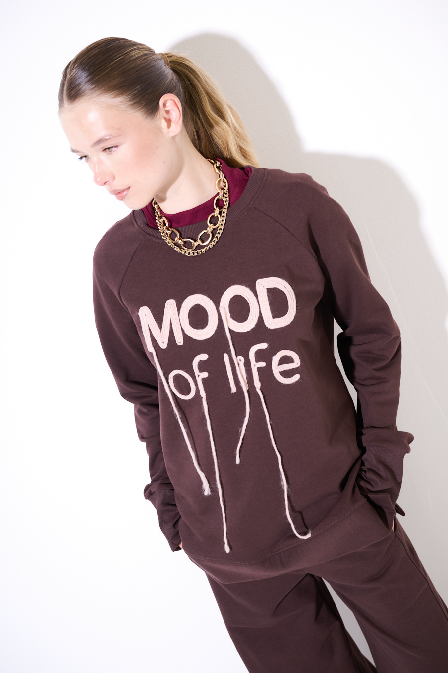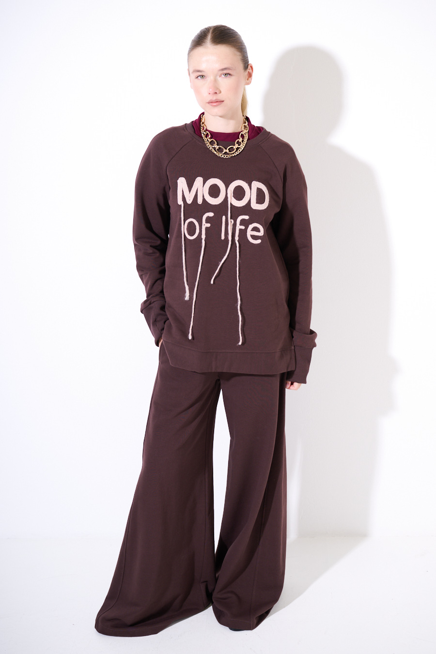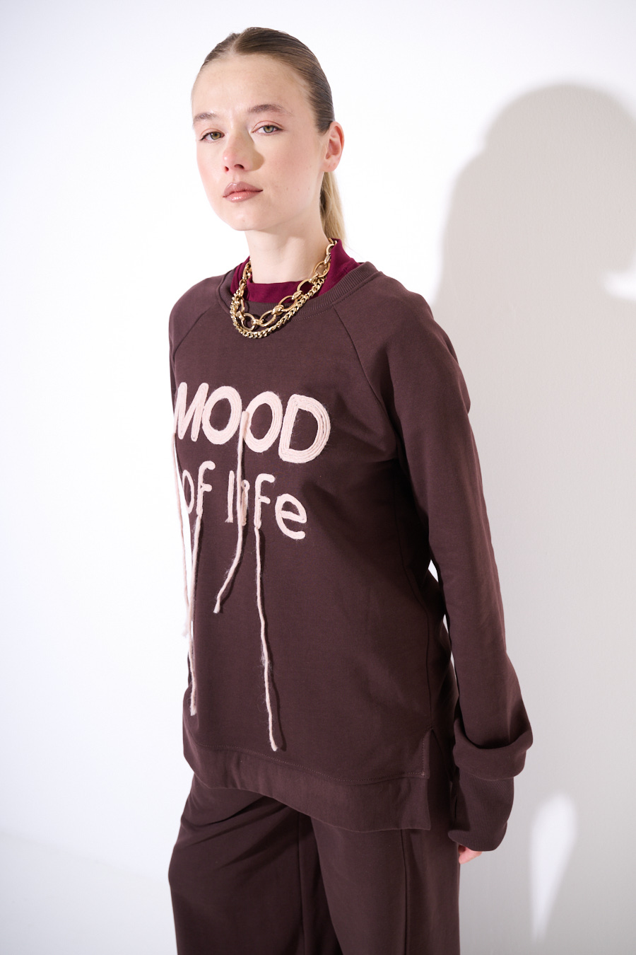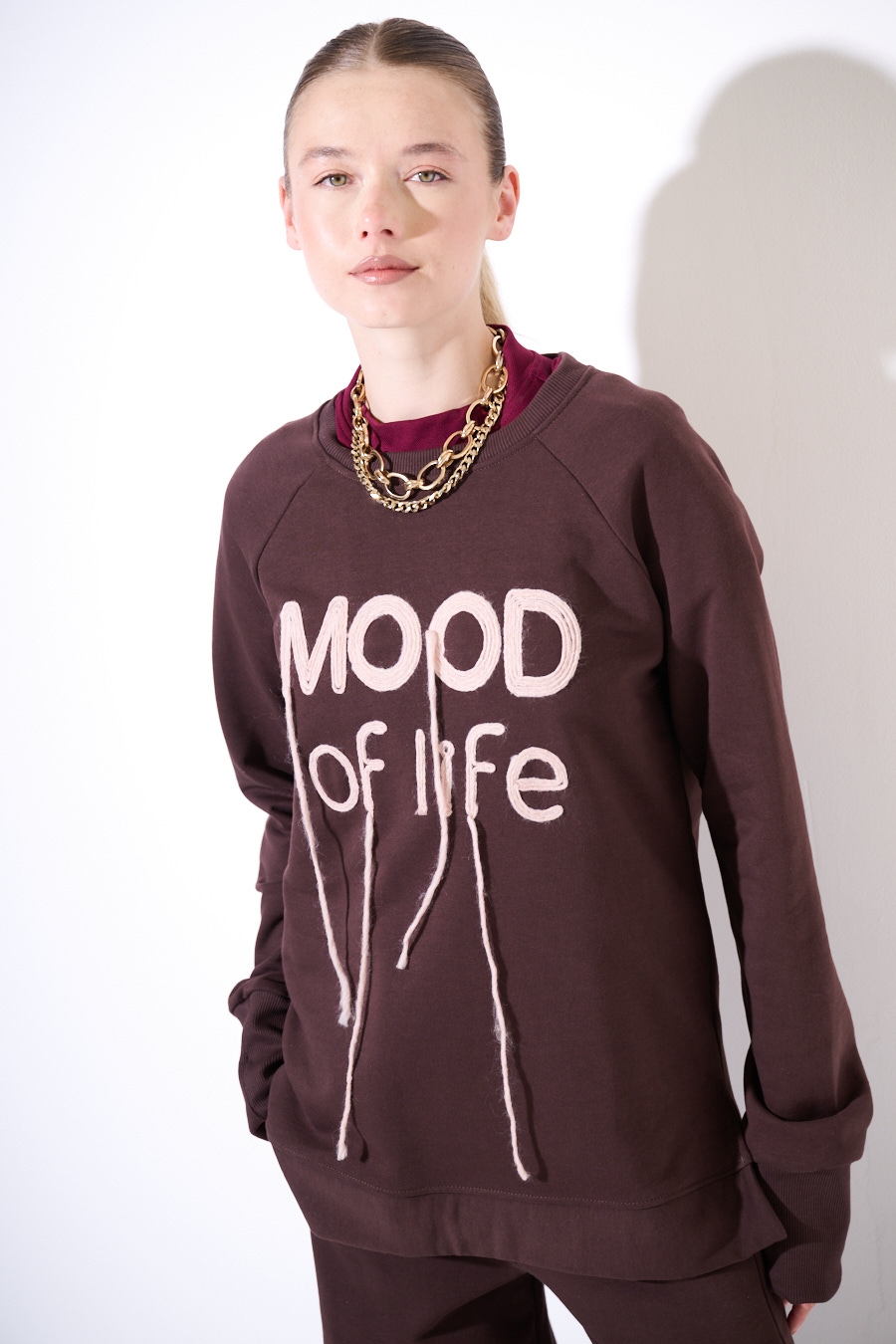 Maglia oversize in felpa garzata con spacchi laterali e ricamo sul fronte.