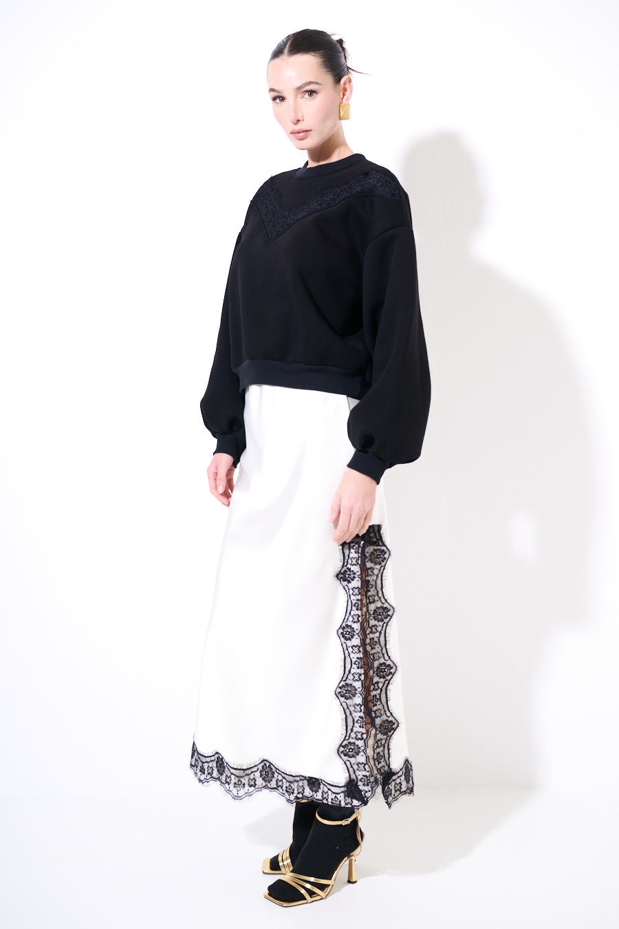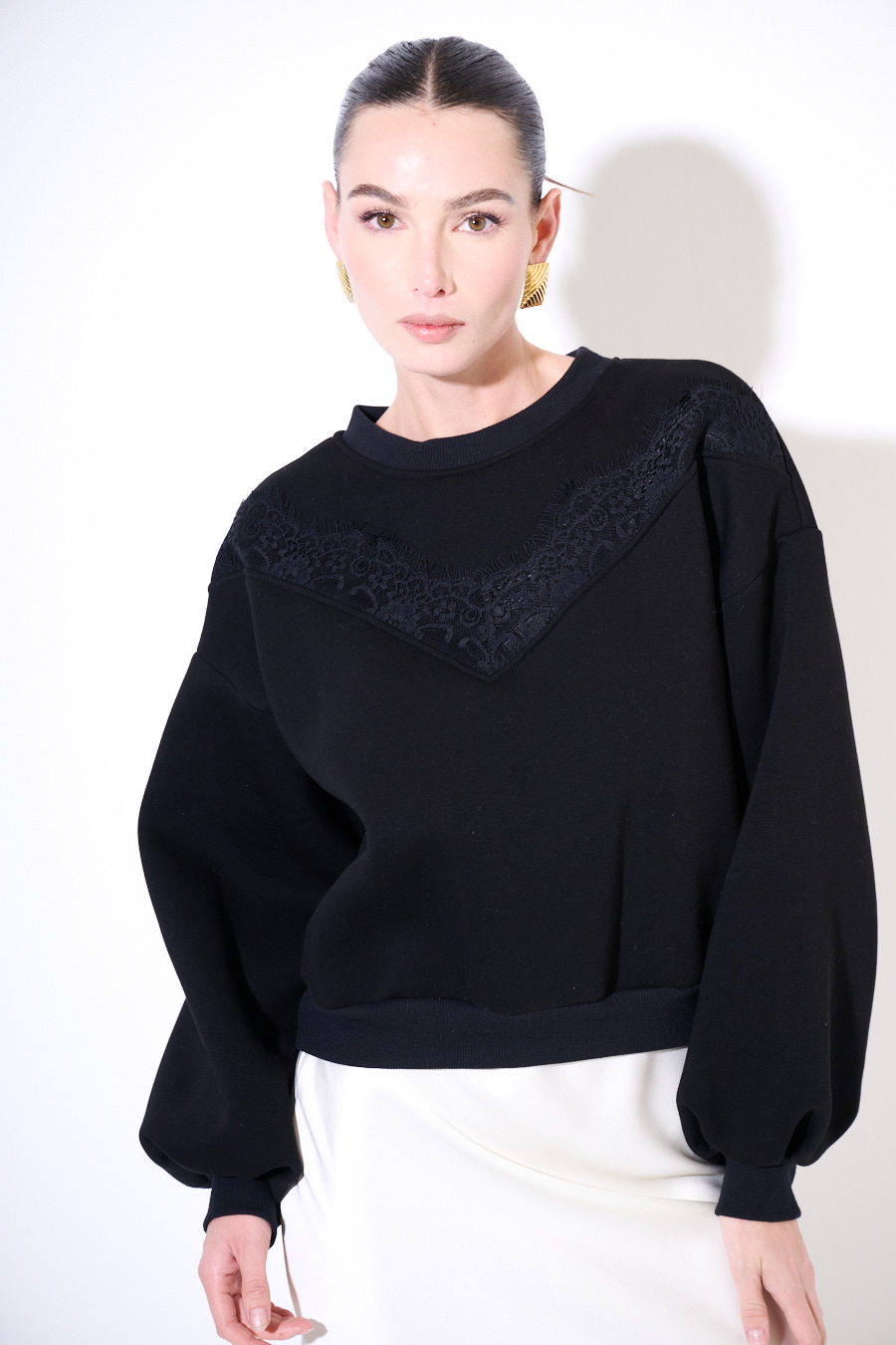 FELPA WARM BASIC OVER INSERTO PIZZO NERO