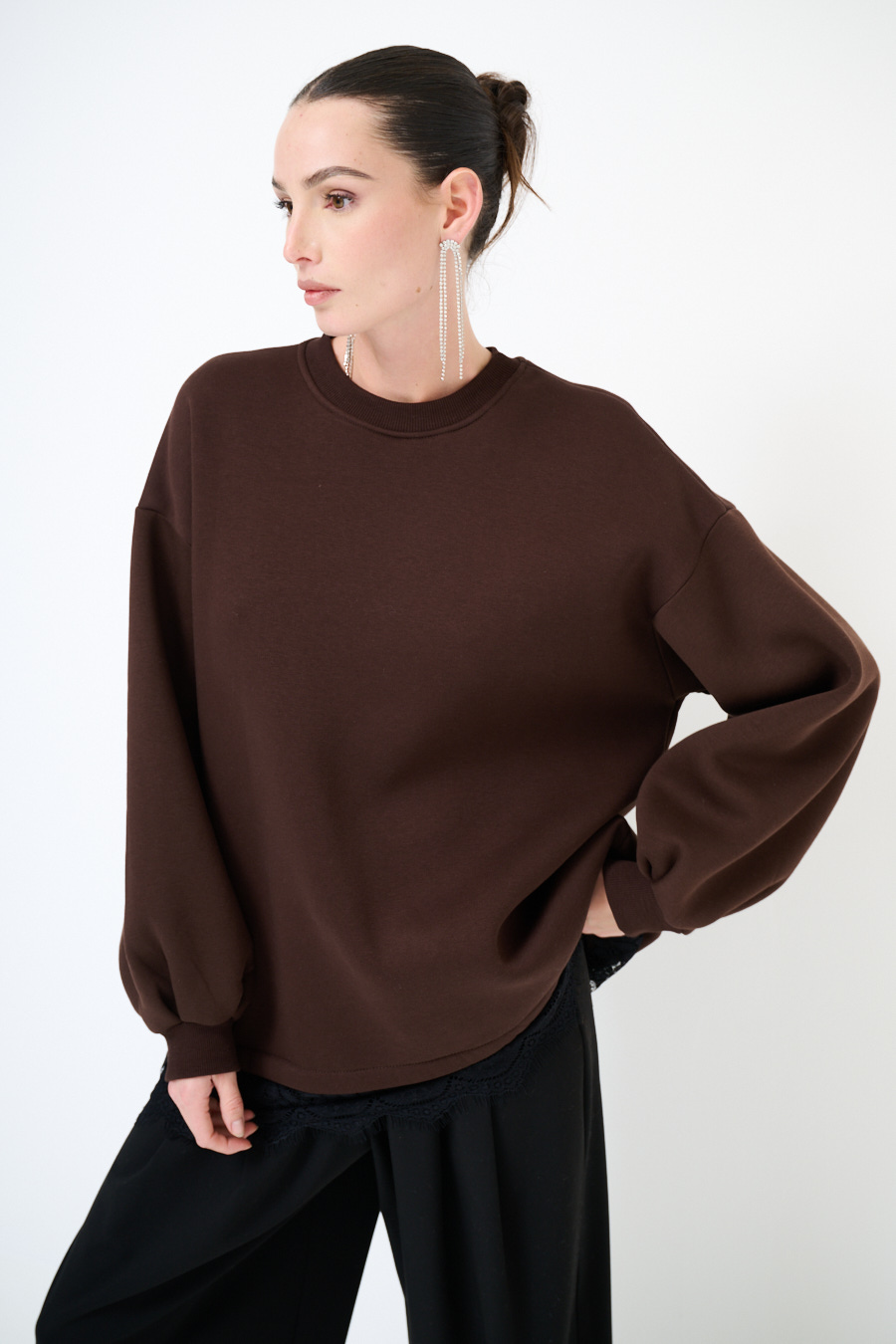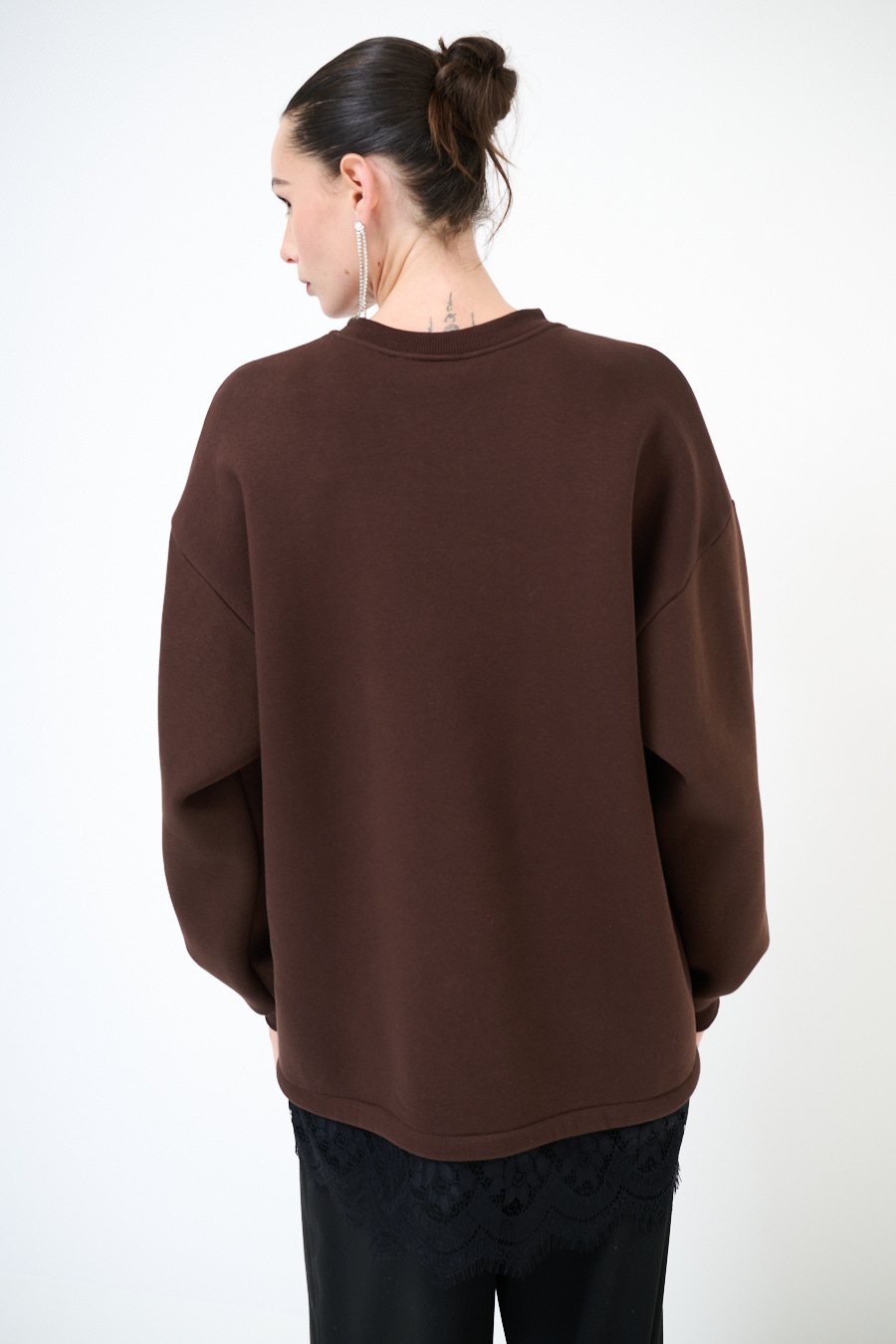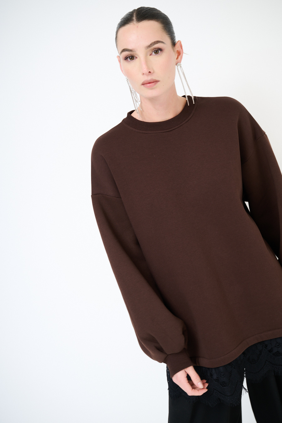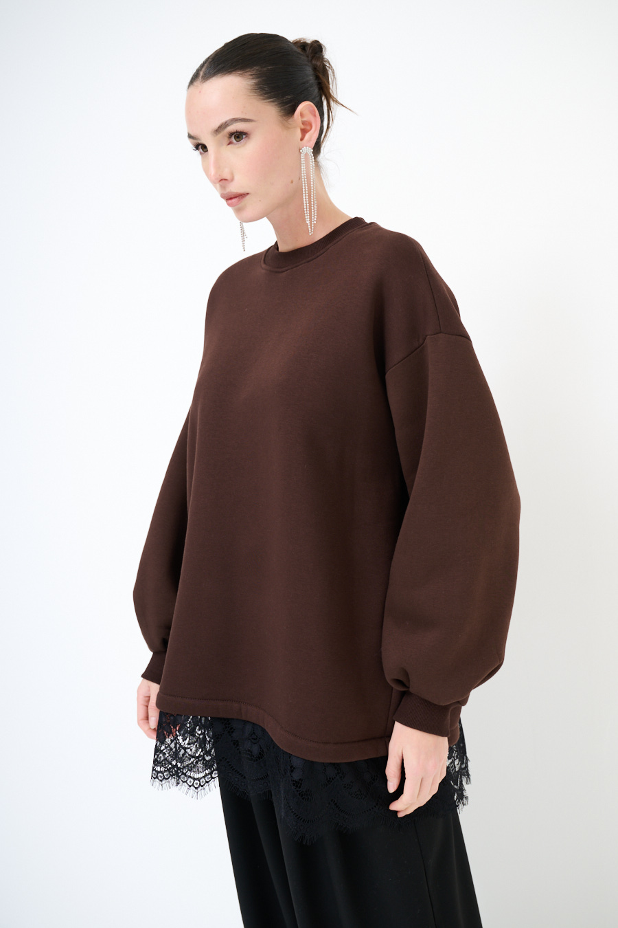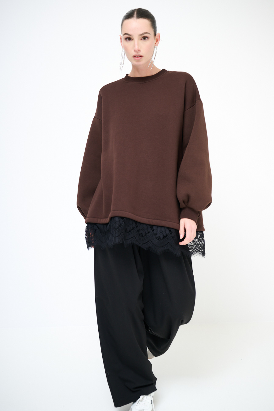 Hoodie paricollo oversize warm, felpata internamente, con inserto in pizzo sul fondo.
