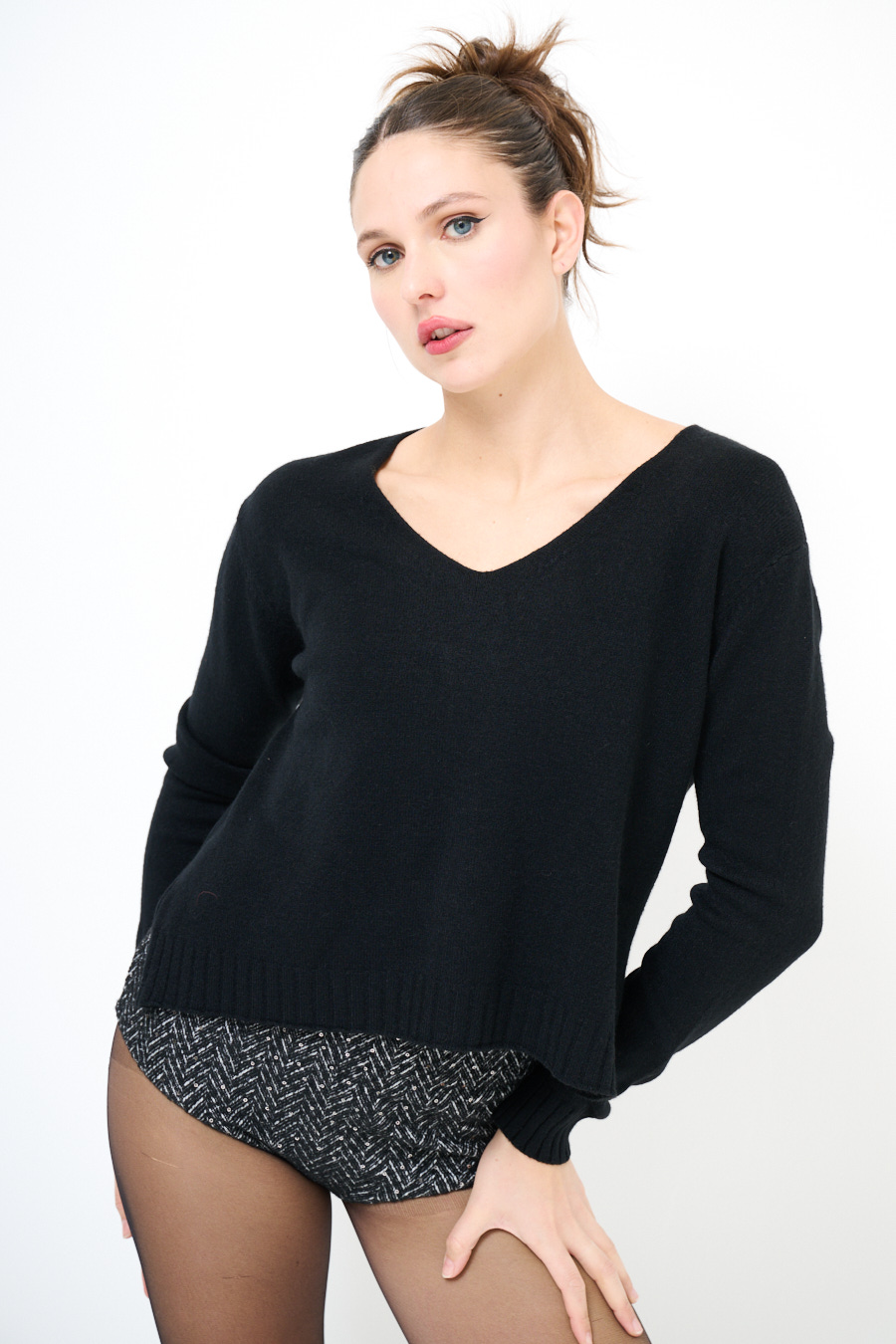 MAGLIA A V CON COSTINA FONDO PIU CORTA DAV. NERO