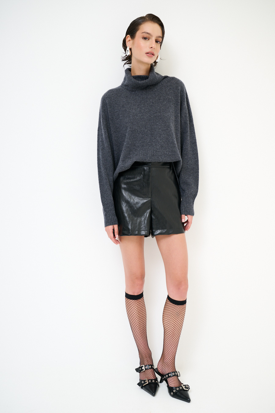 MAGLIA COLLO ALTO CON RIGA DAV. MISTO CACHEMIRE GRIGIO ANTRACITE