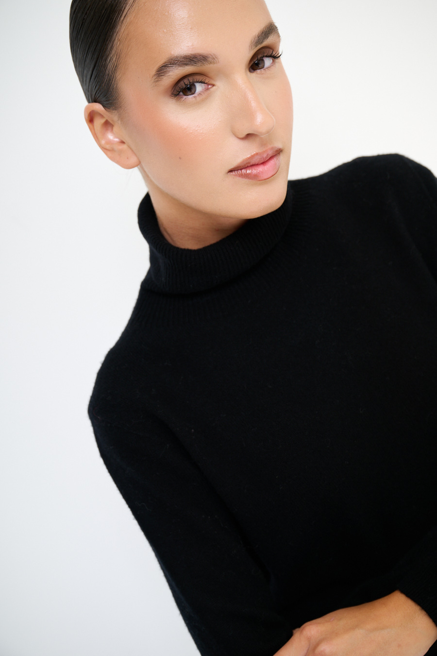 MAGLIA COLLO ALTO MISTO CACHEMIRE NERO