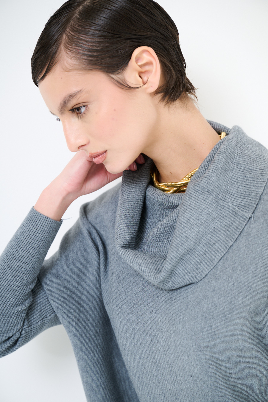 MAGLIA COLLO CIAMBELLA MANICA COSTINA GRIGIO