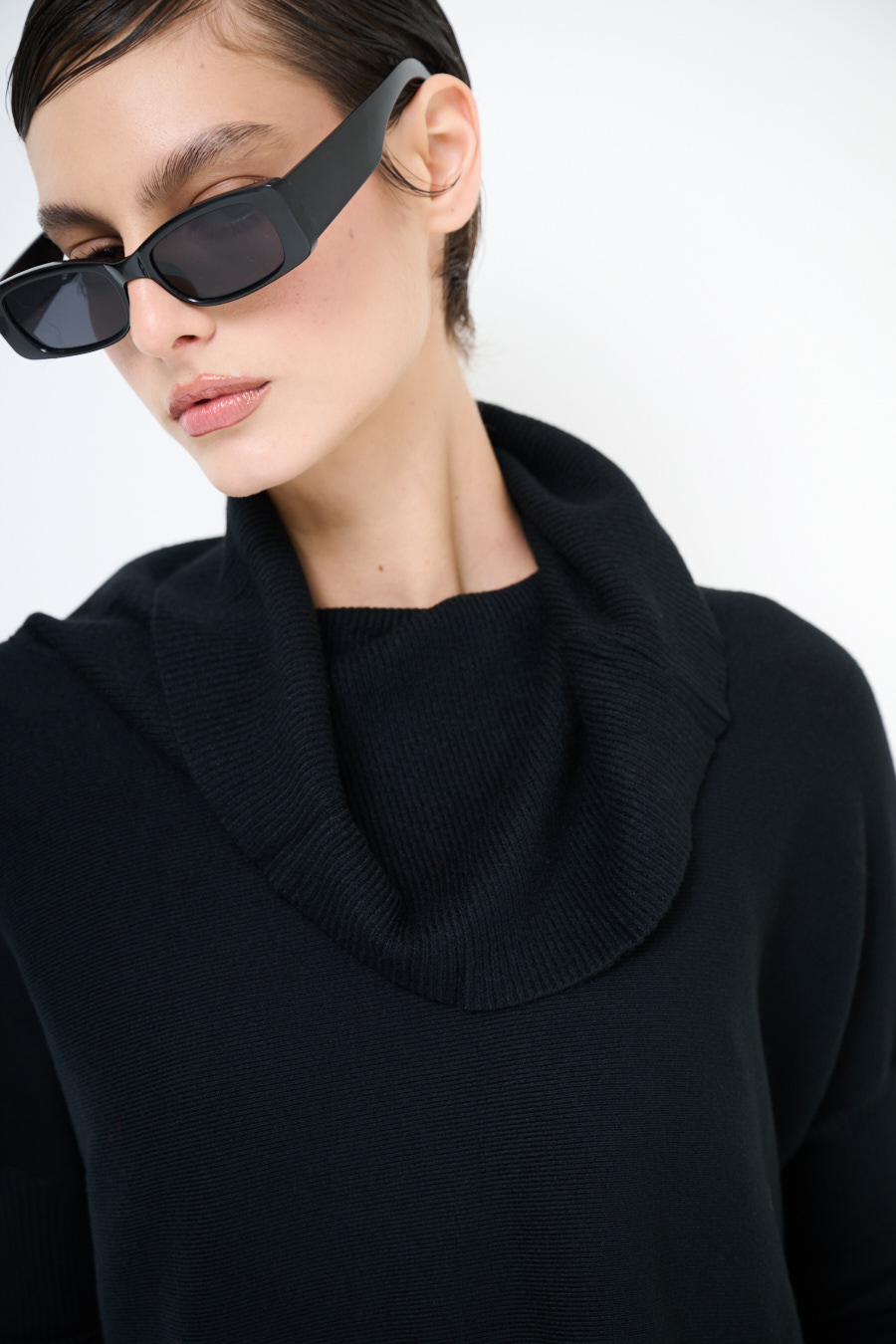 MAGLIA COLLO CIAMBELLA MANICA COSTINA NERO