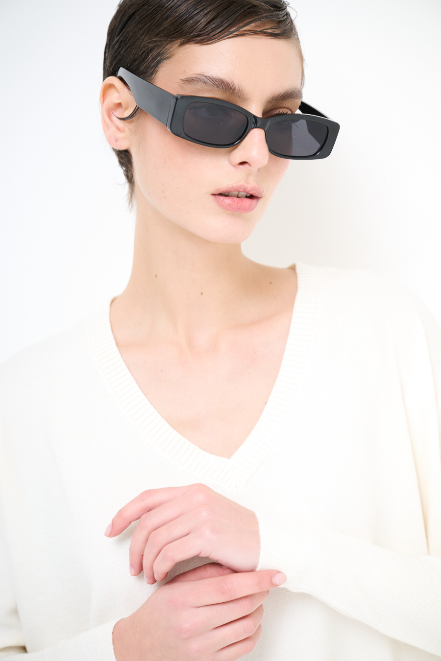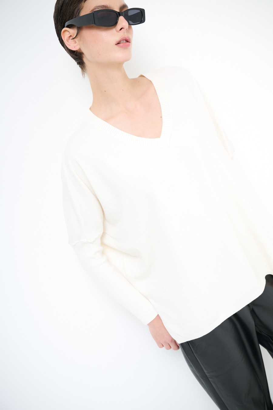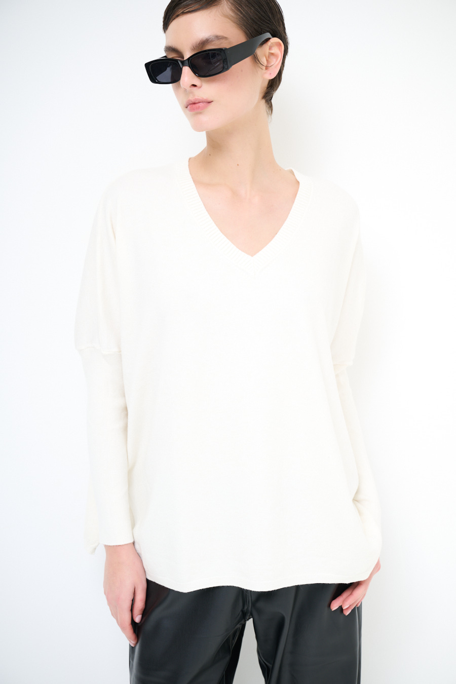 Maglia con scollo a v e manica lunga.
