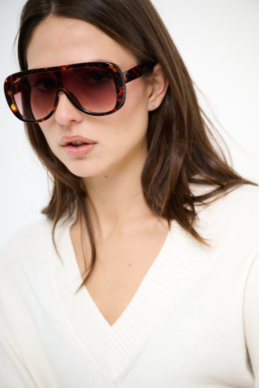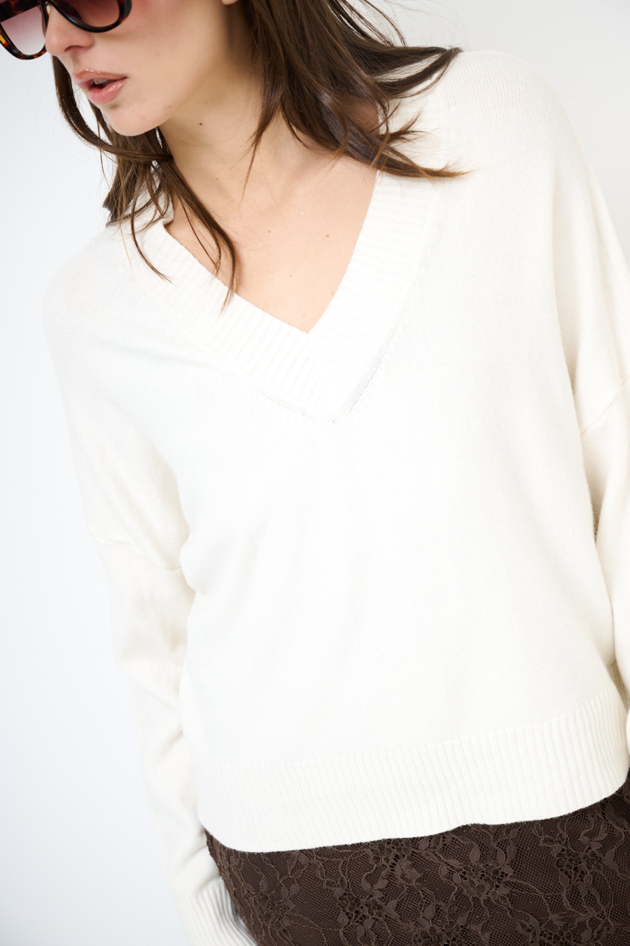 Maglia crop con profili alti a coste e scollo a v con manica ampia.