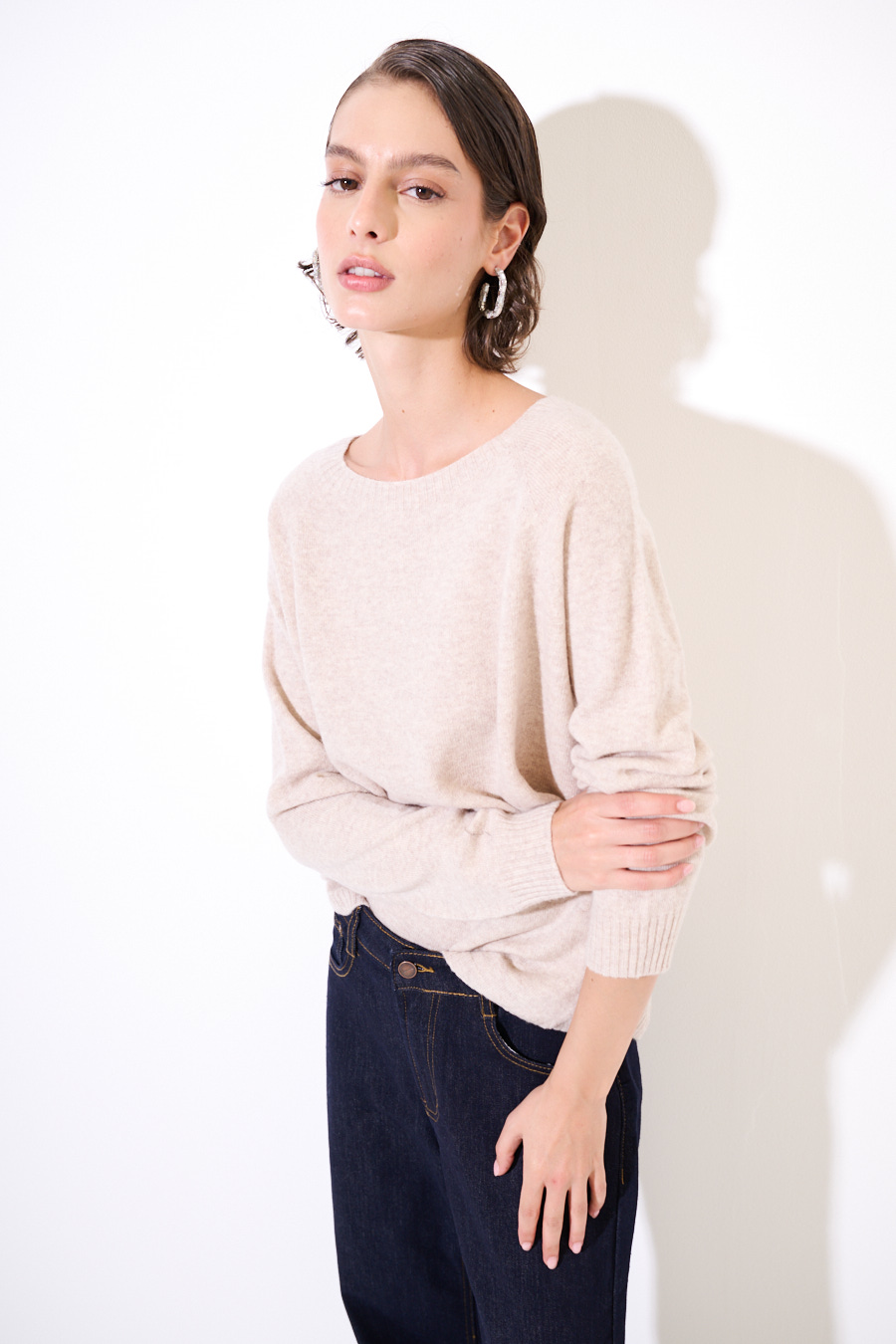 MAGLIA FONDO STONDATO MISTO CACHEMIRE BEIGE