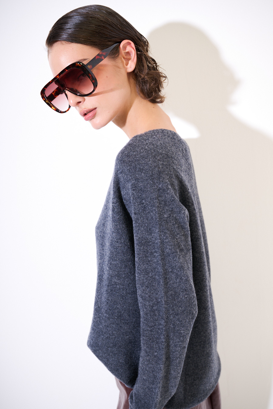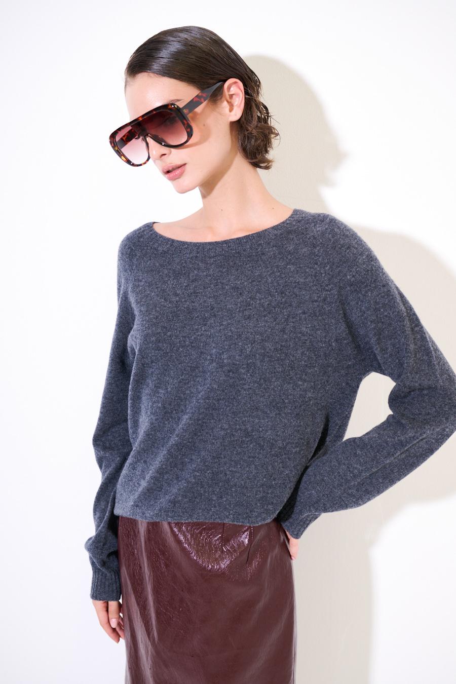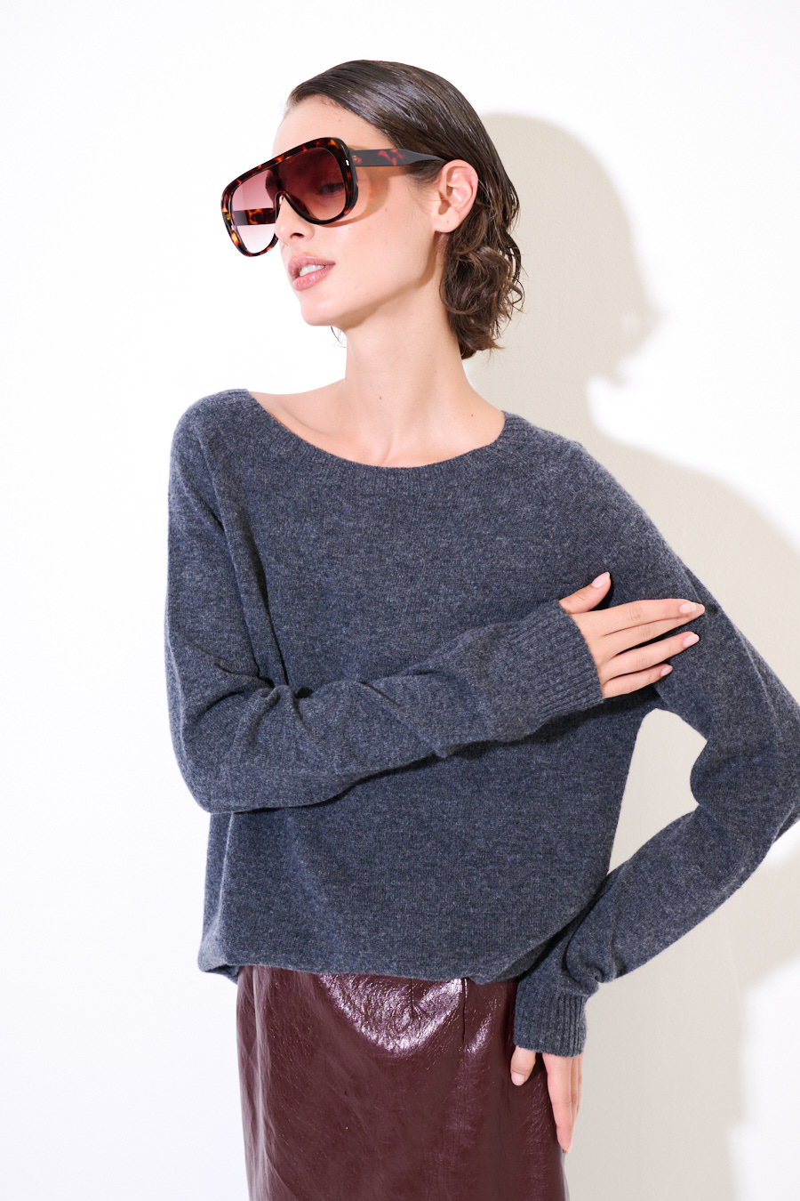 MAGLIA FONDO STONDATO MISTO CACHEMIRE GRIGIO ANTRACITE