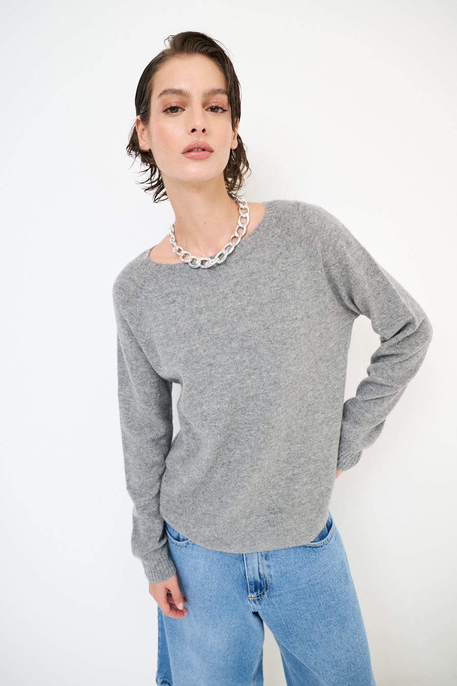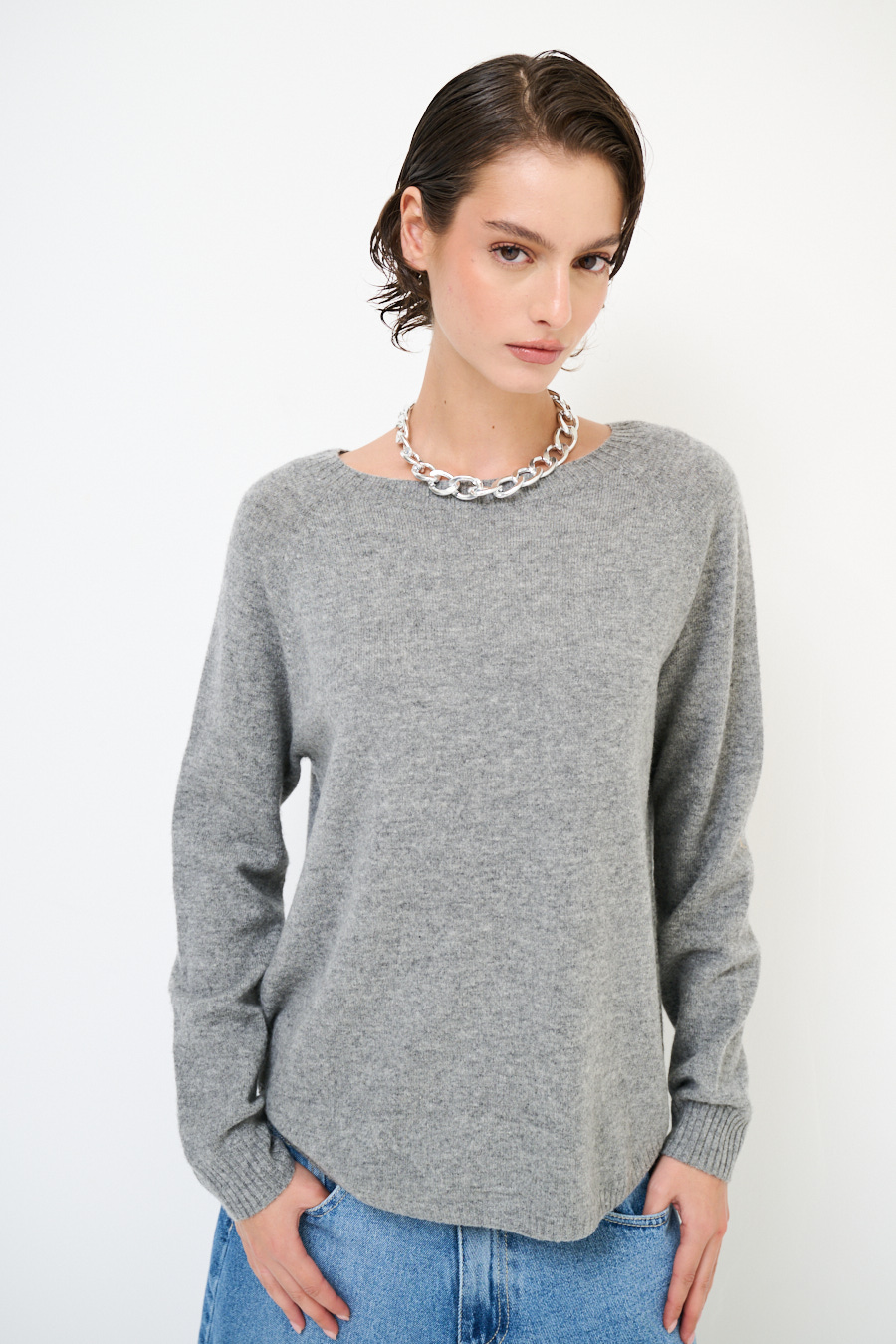 MAGLIA FONDO STONDATO MISTO CACHEMIRE GRIGIO MEDIO
