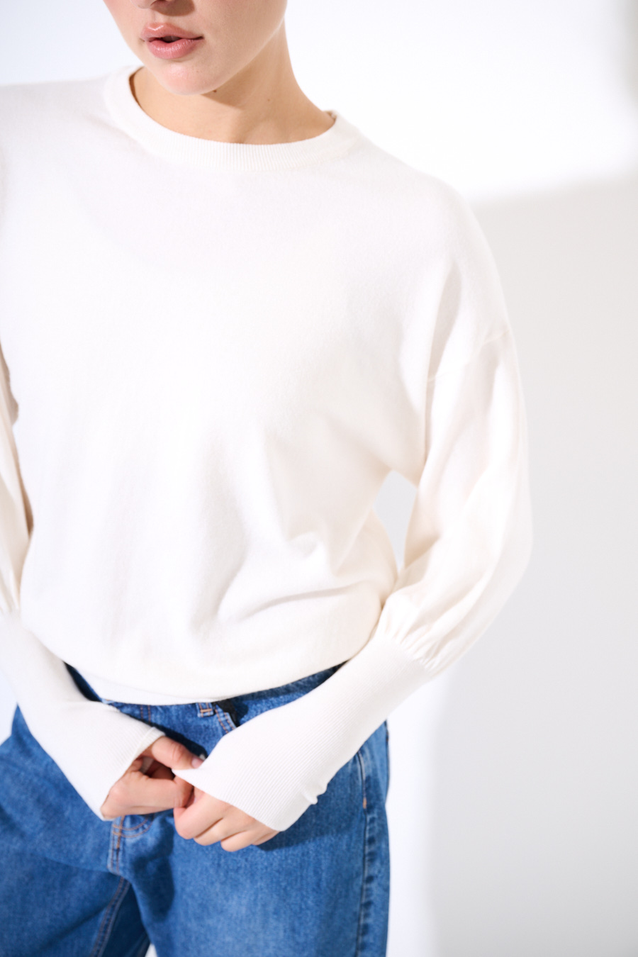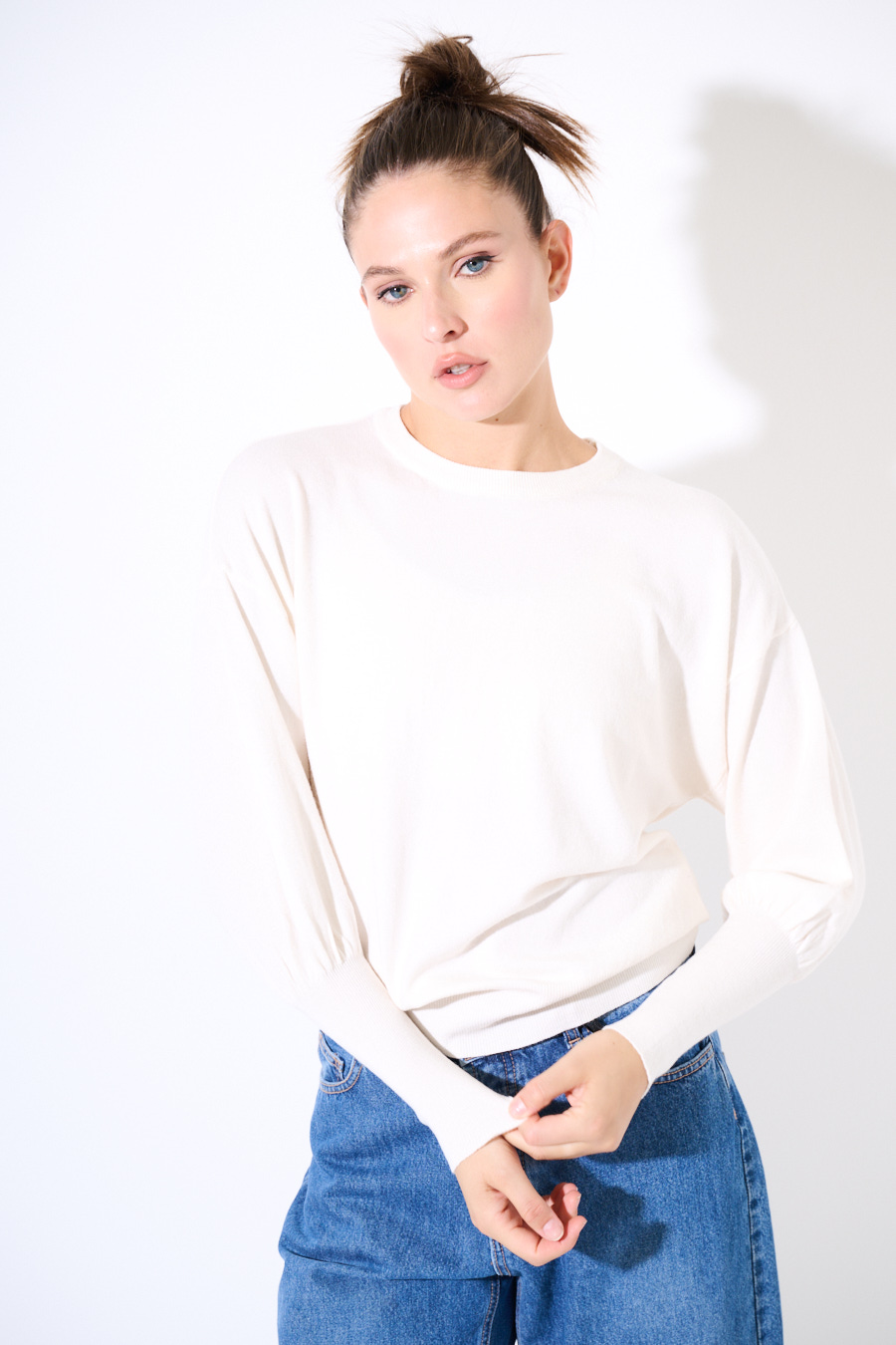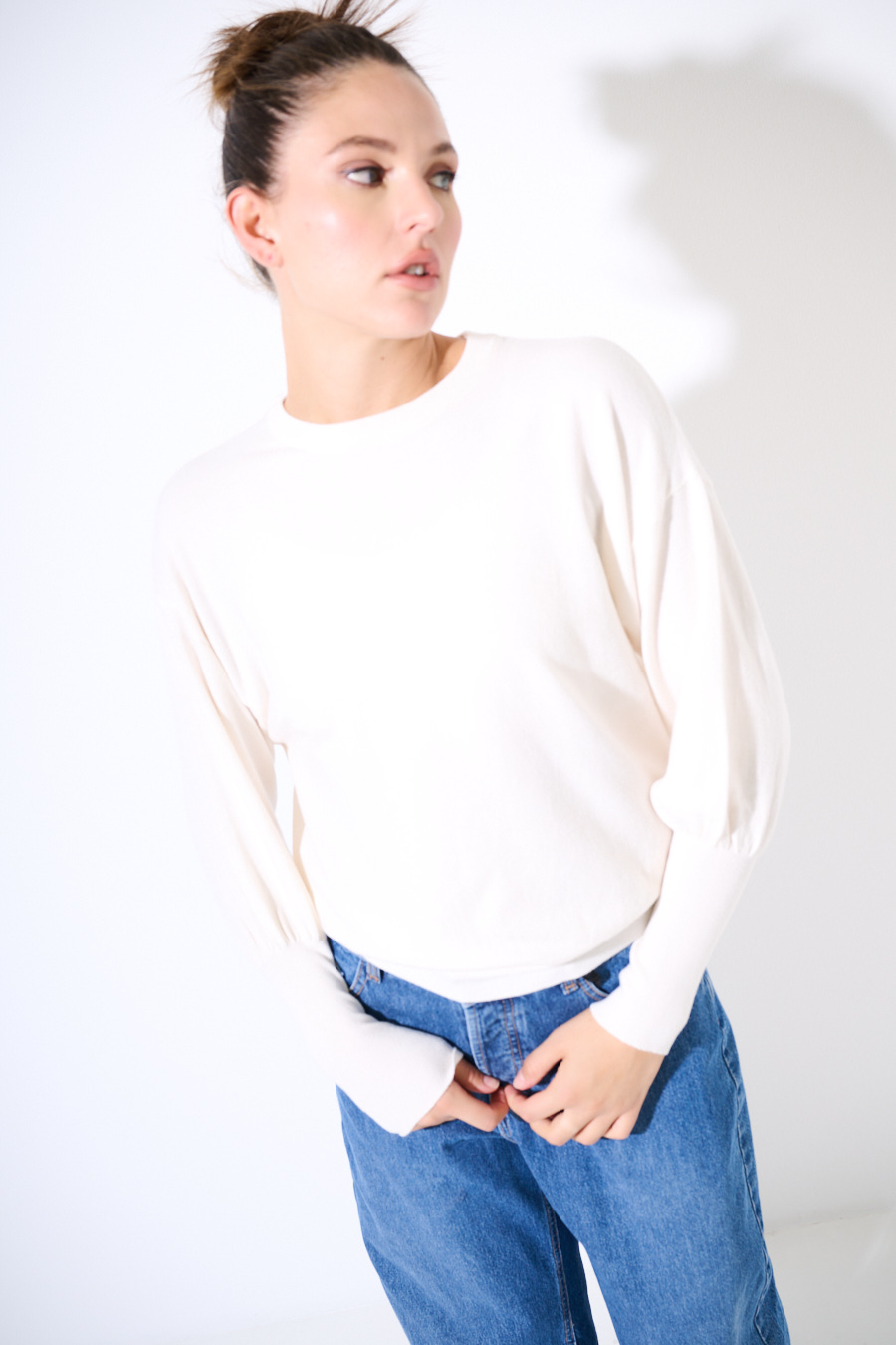 Maglia girocollo con manica ampia a palloncino e spalla calata.