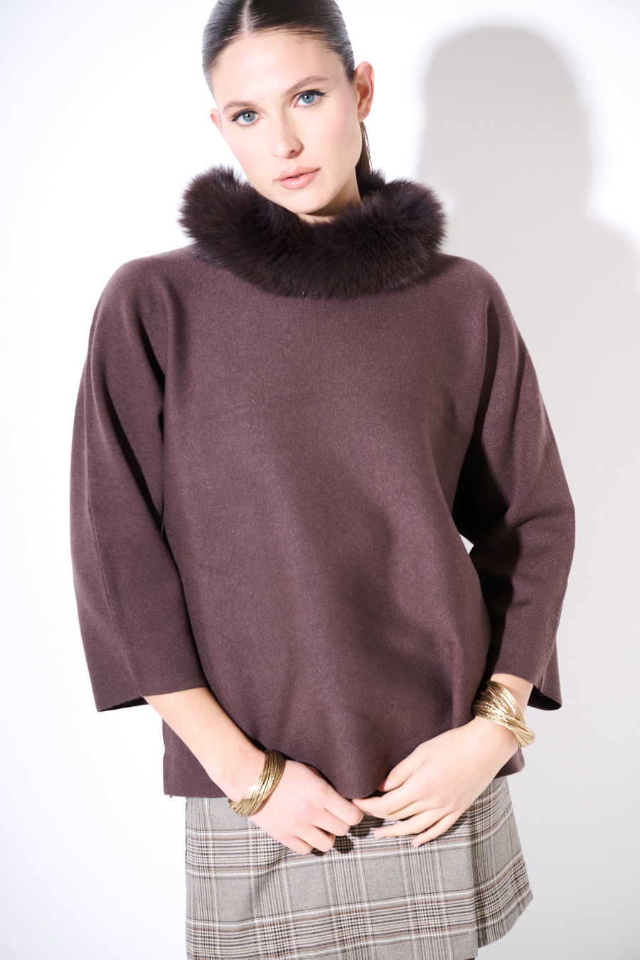 MAGLIA MANTELLA CON COLLO PELLICCIA MORO