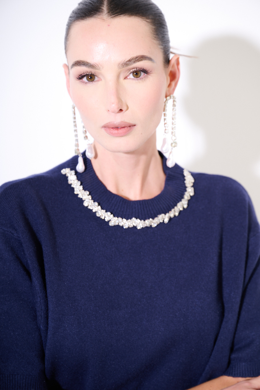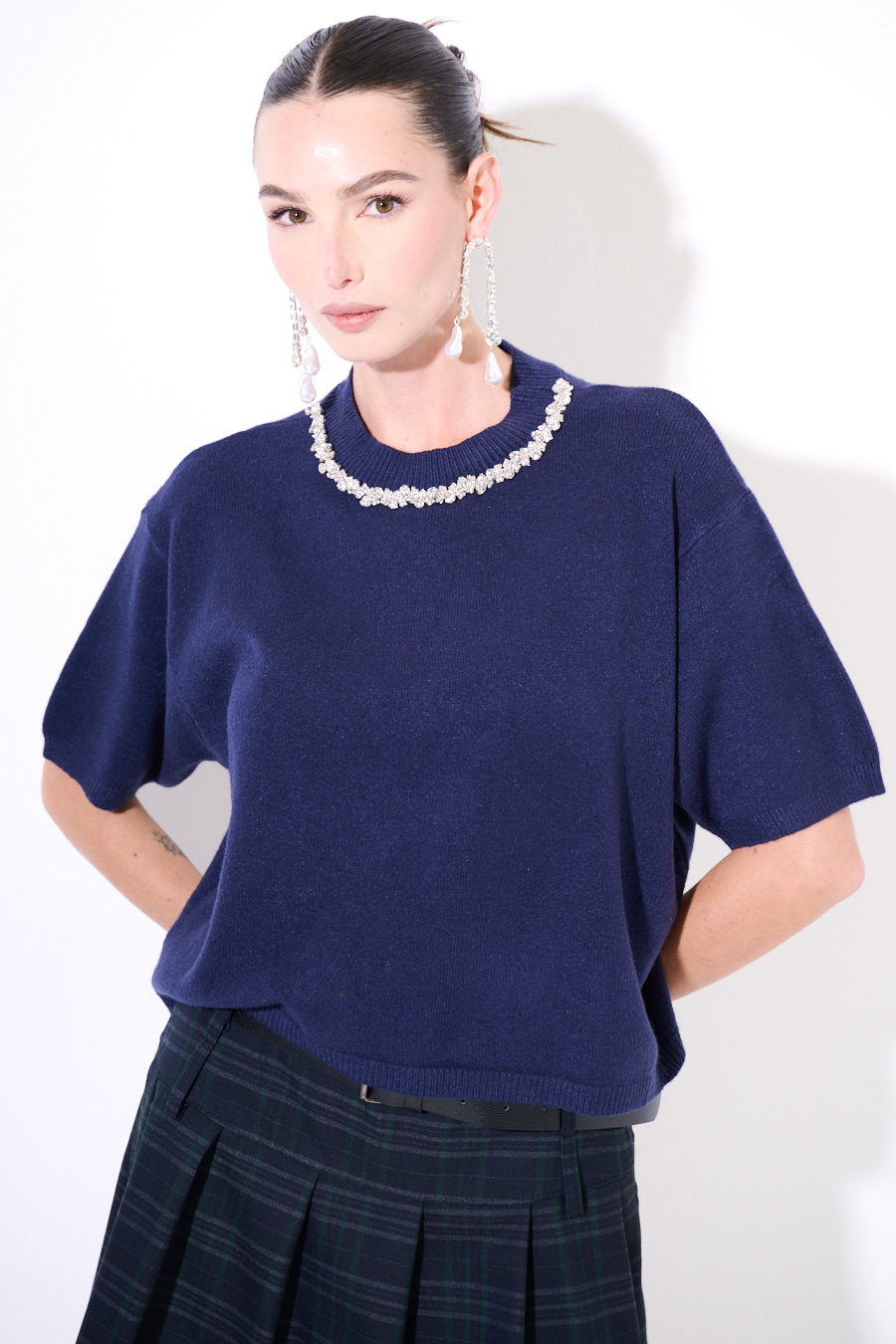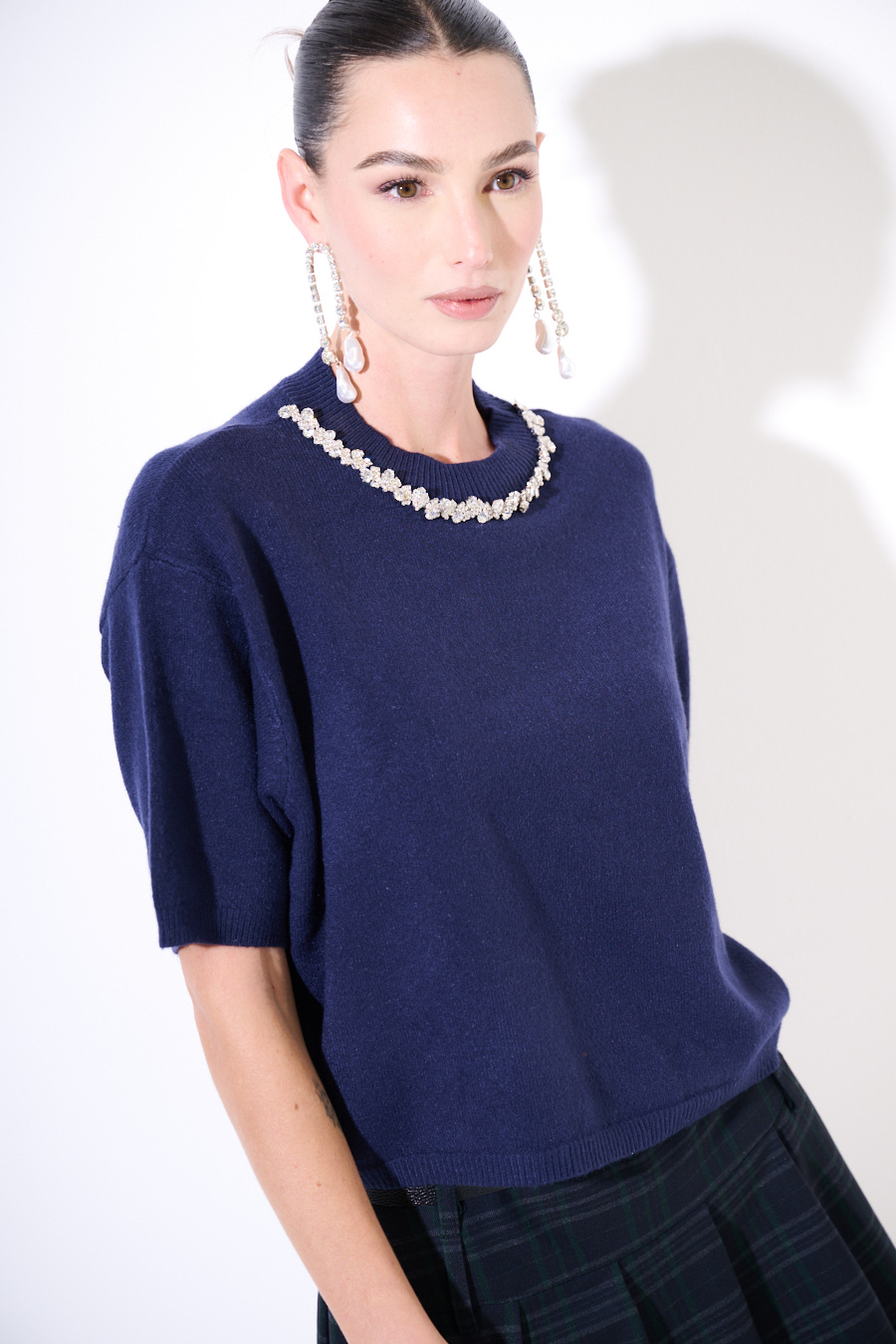 Maglia a mezzamanica con girocollo gioiello.