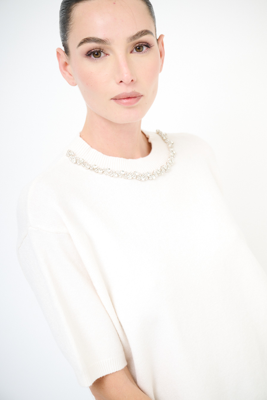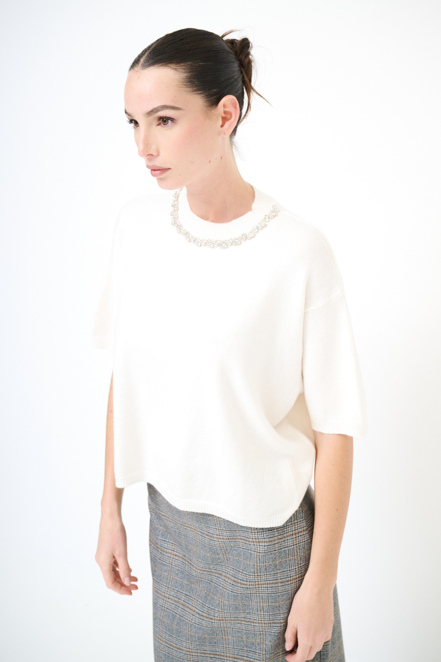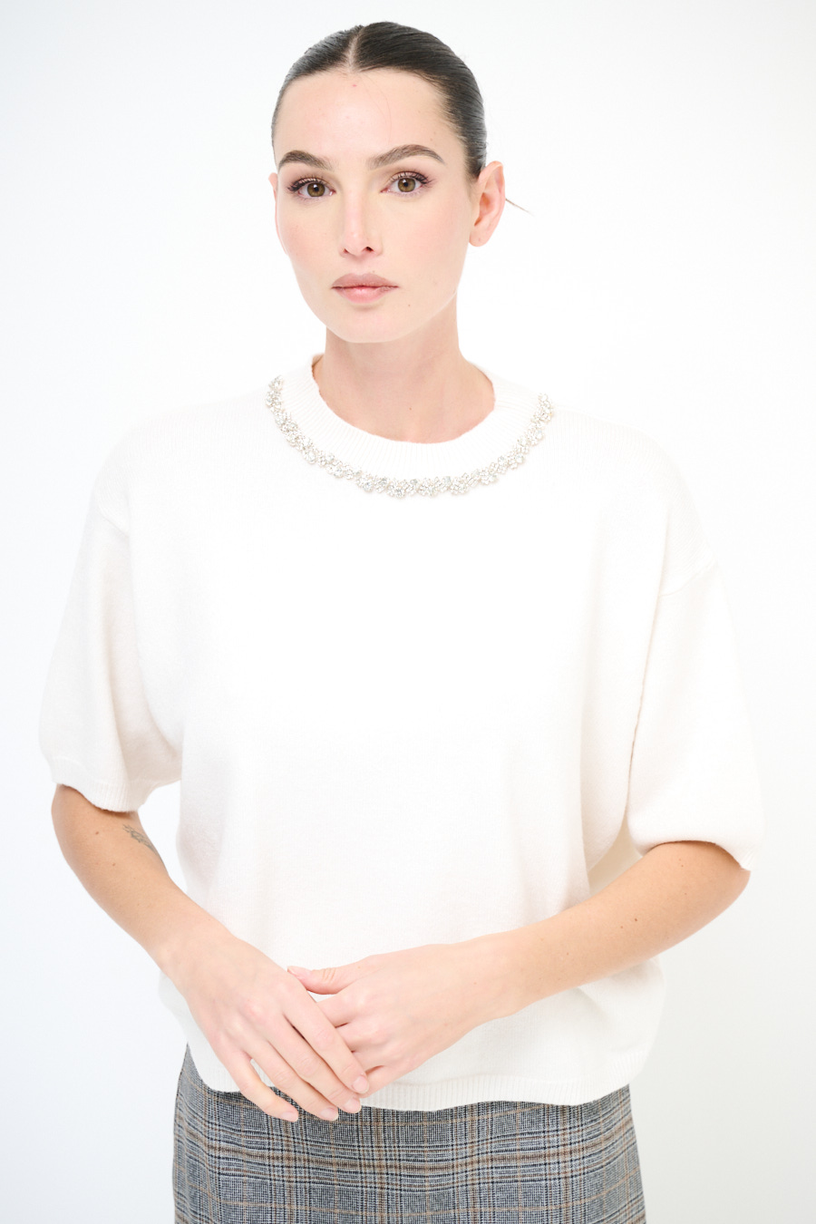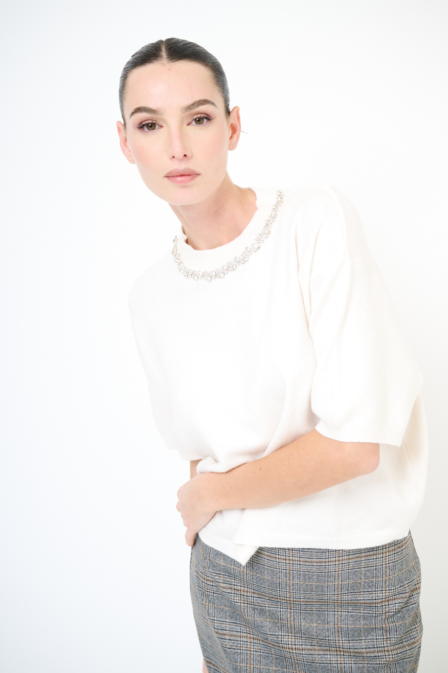 MAGLIA MEZZA MANICA CON GIROCOLLO GIOIELLO BURRO