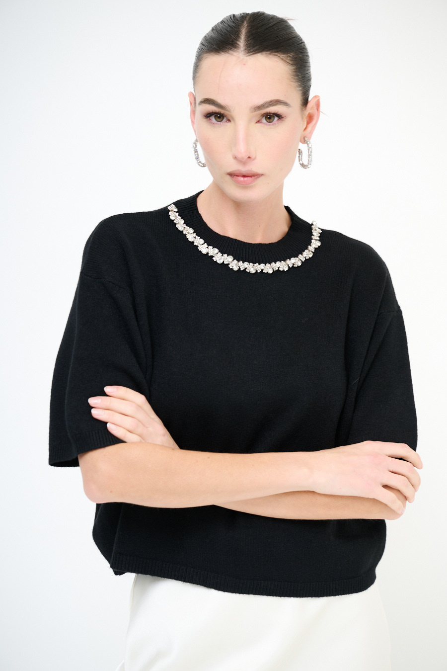 Maglia a mezzamanica con girocollo gioiello.