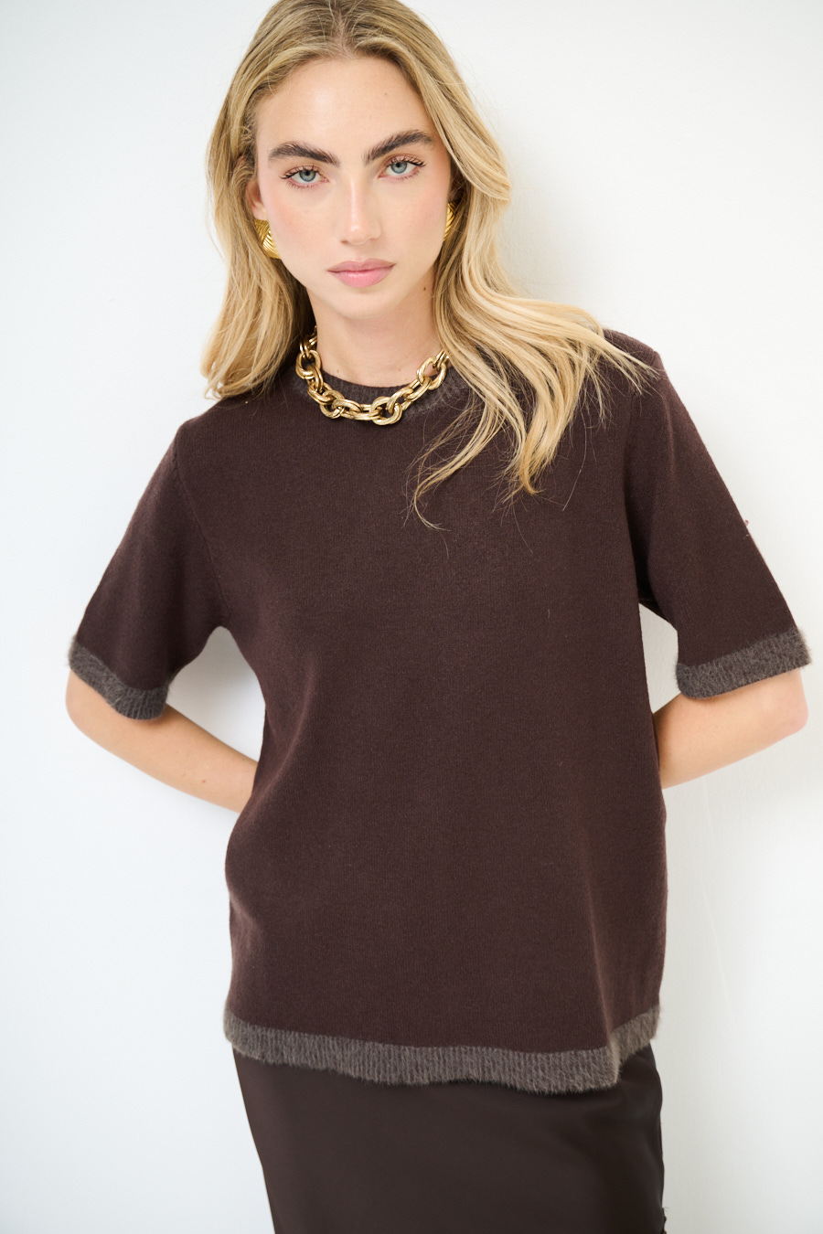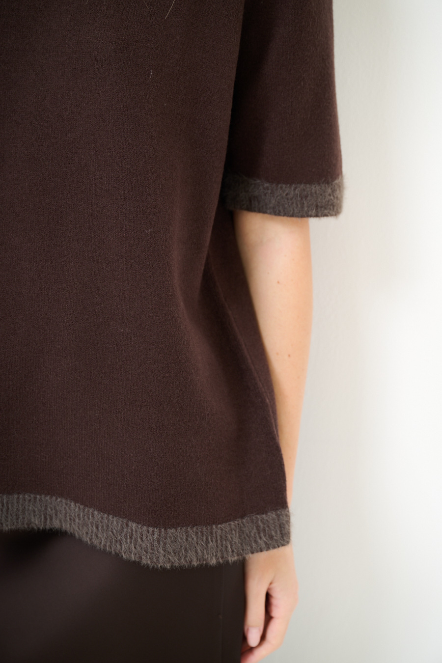 MAGLIA MEZZA MANICA CON PROFILI PELLICCIA MORO