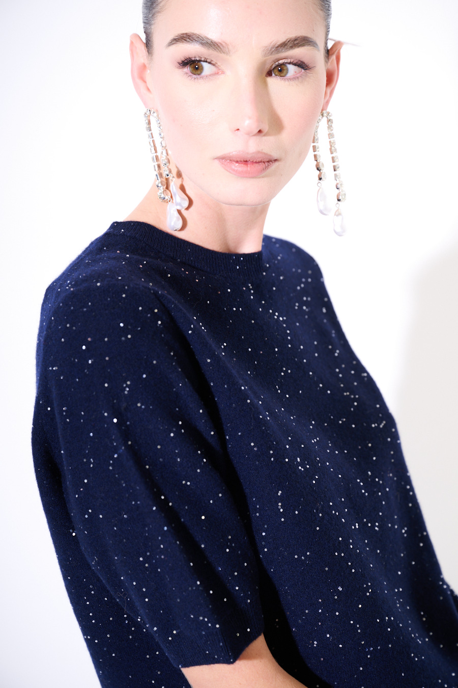 Maglia a mezze maniche con micropaillettes in misto cashmere.