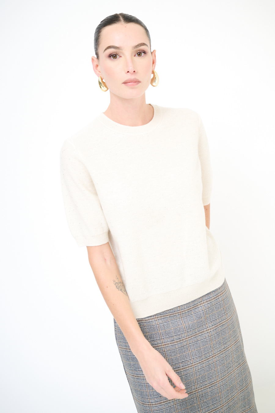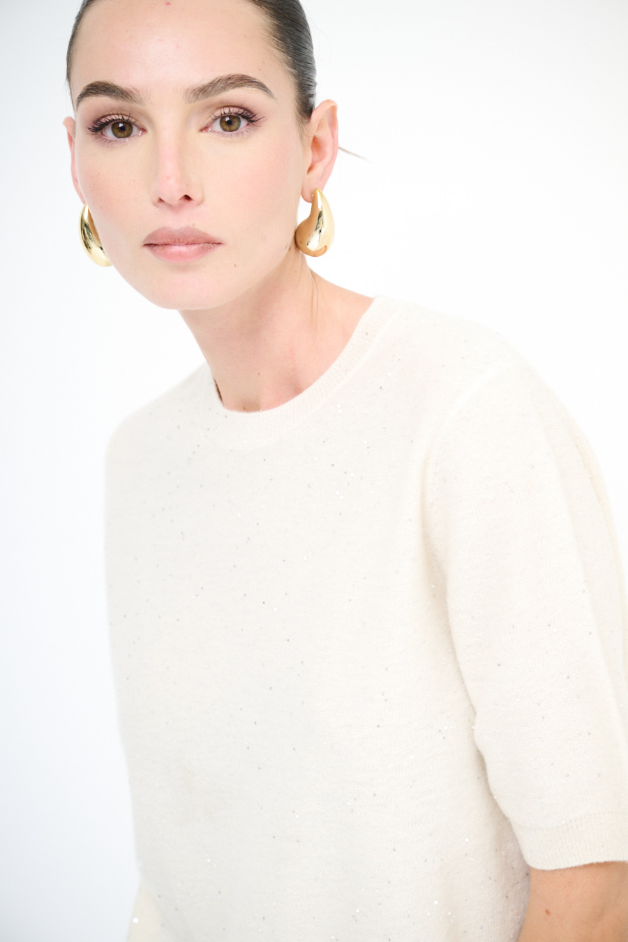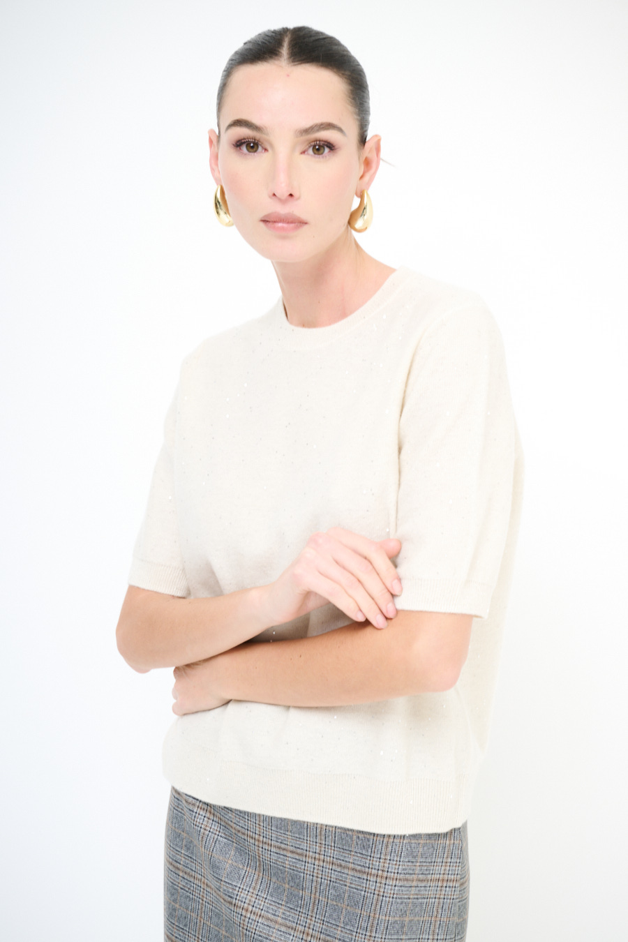 Maglia a mezze maniche con micropaillettes in misto cashmere.