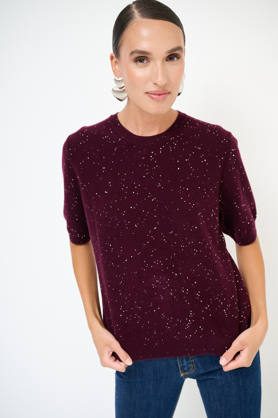 Maglia a mezze maniche con micropaillettes in misto cashmere.