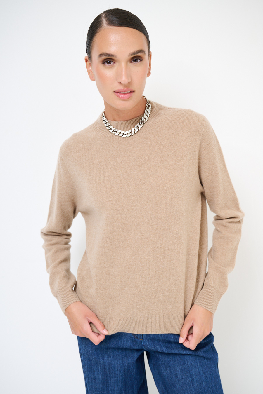 MAGLIA MEZZO COLLO MISTO CACHEMIRE CAMMELLO