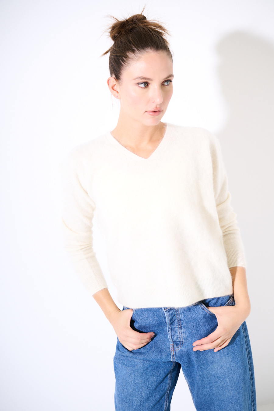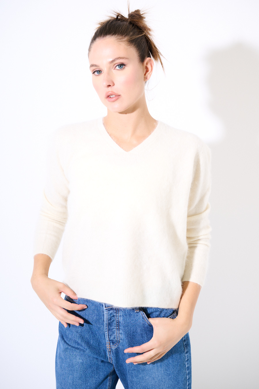 Maglia in misto mohair oversize con scollo a v.