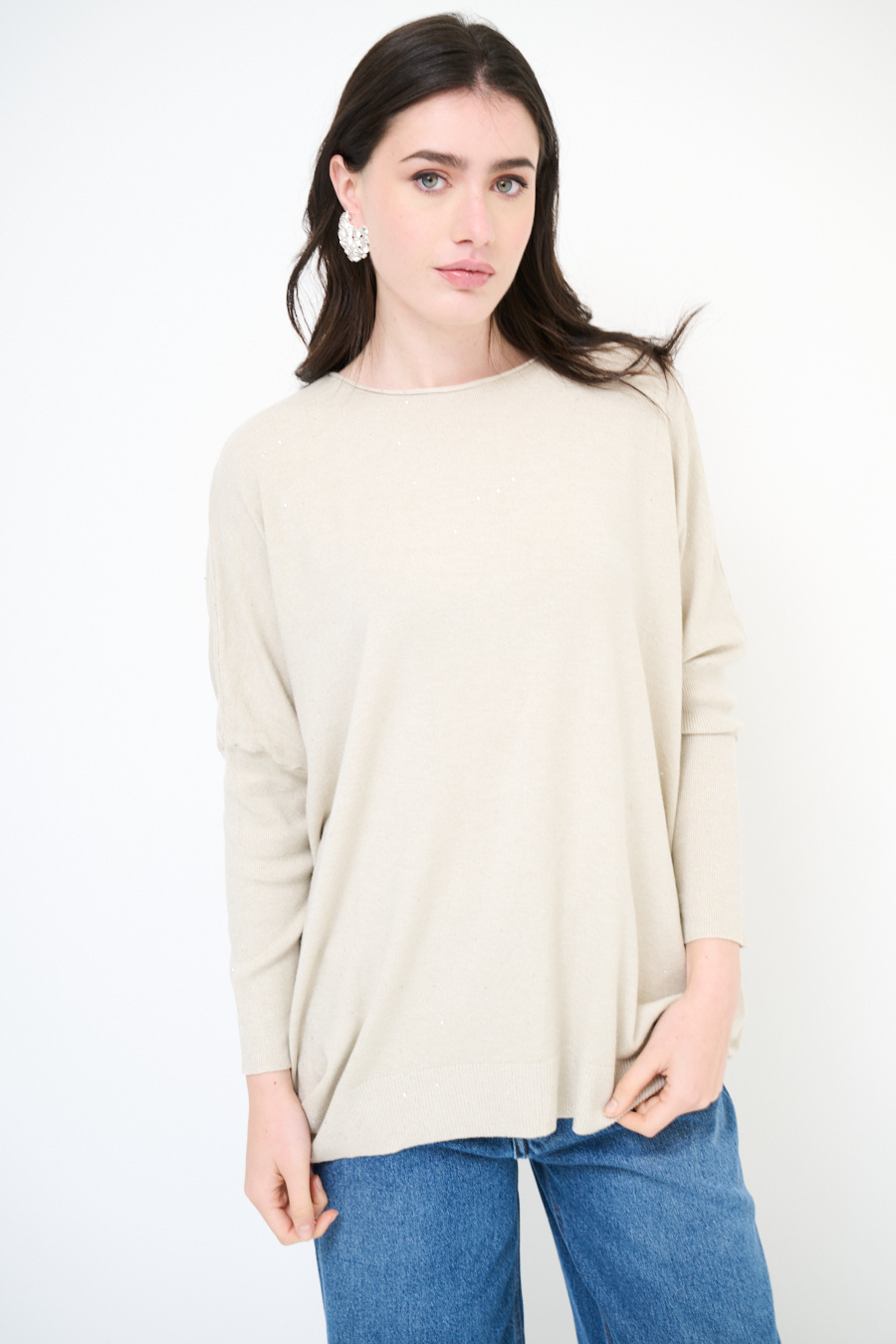 Maglia oversize a girocollo con micropaillettes e manica stretta.