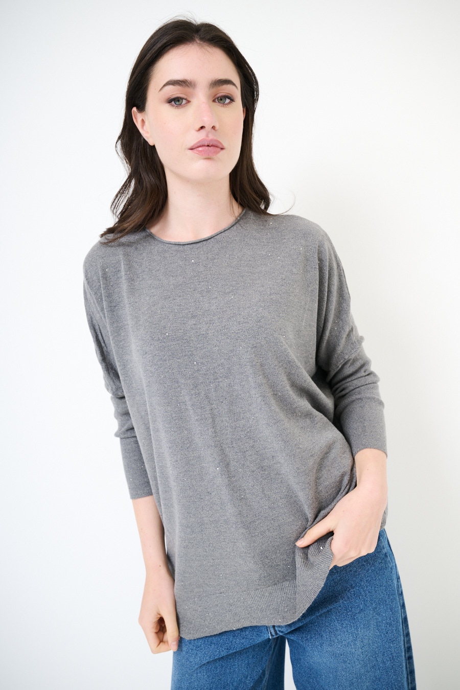 MAGLIA OVER MICROPAILLETTES GRIGIO