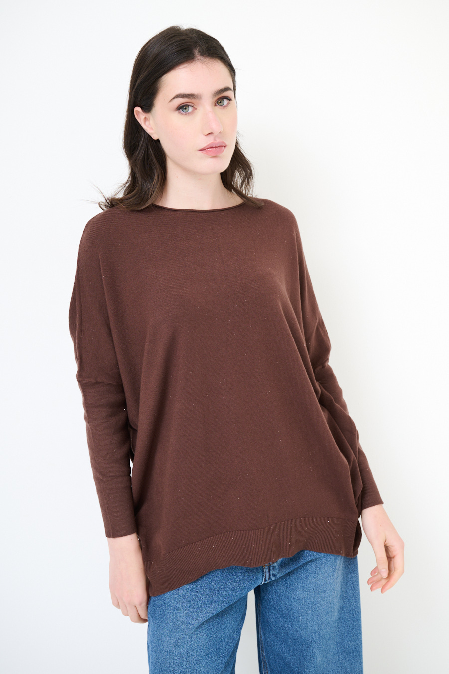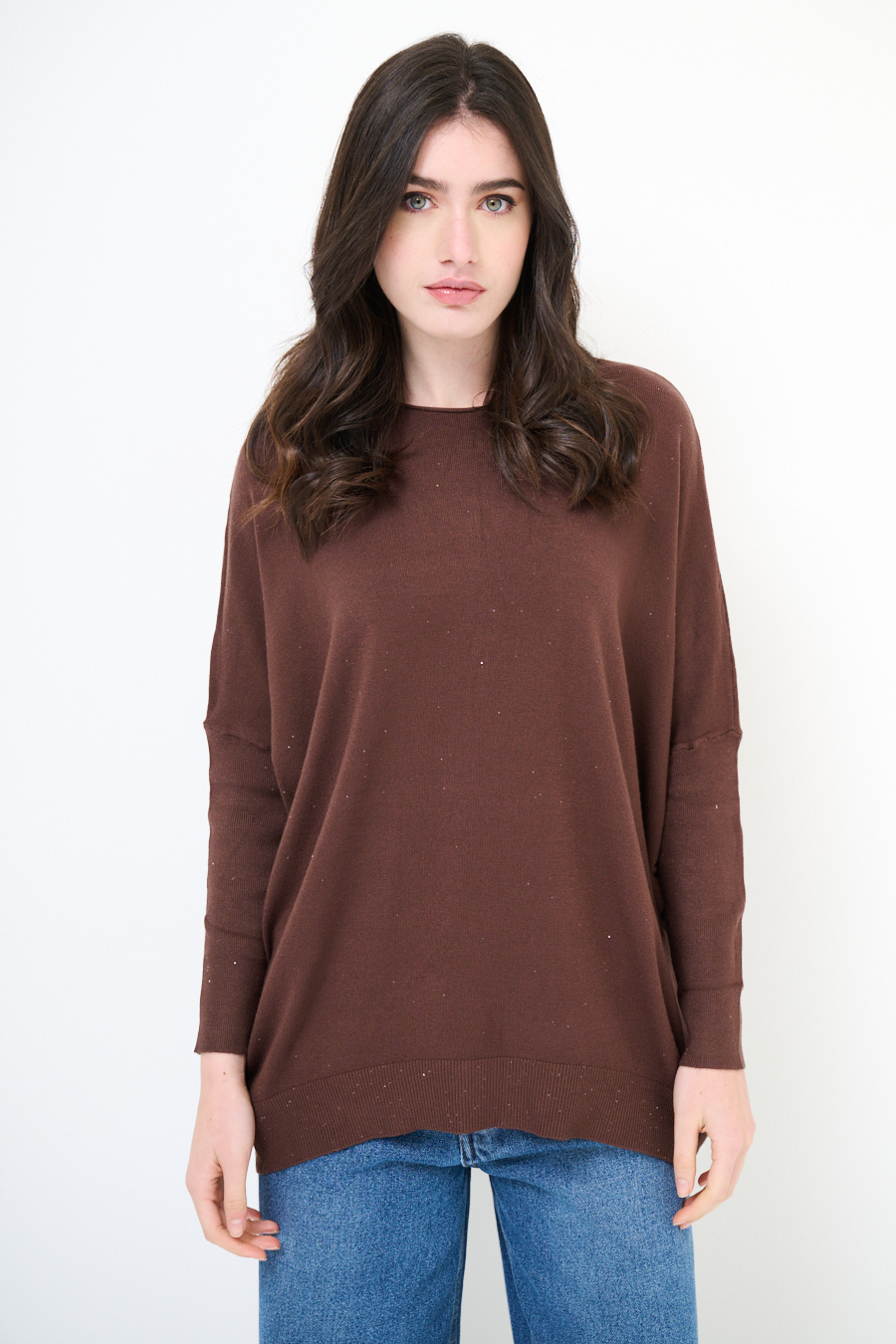 Maglia oversize a girocollo con micropaillettes e manica stretta.