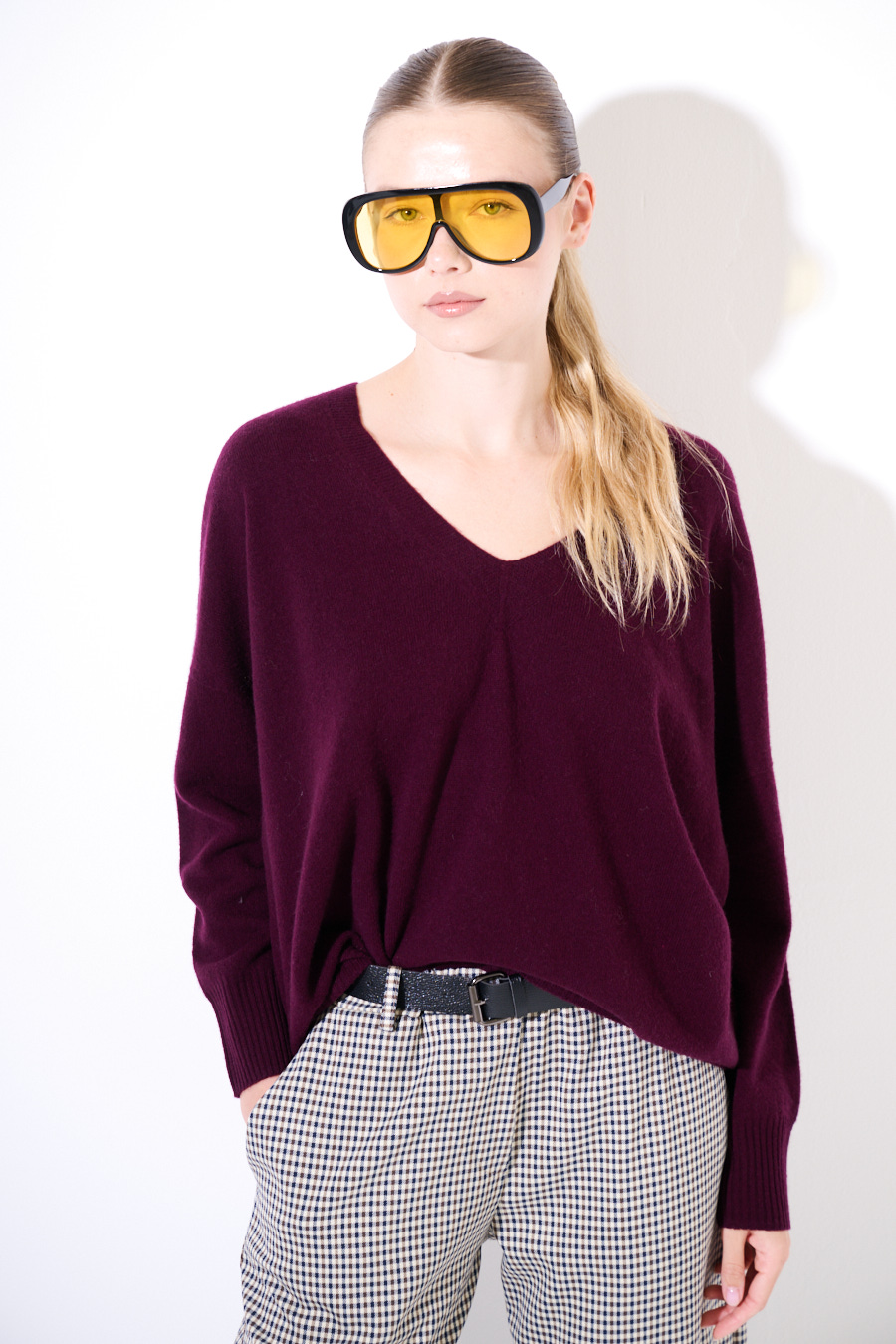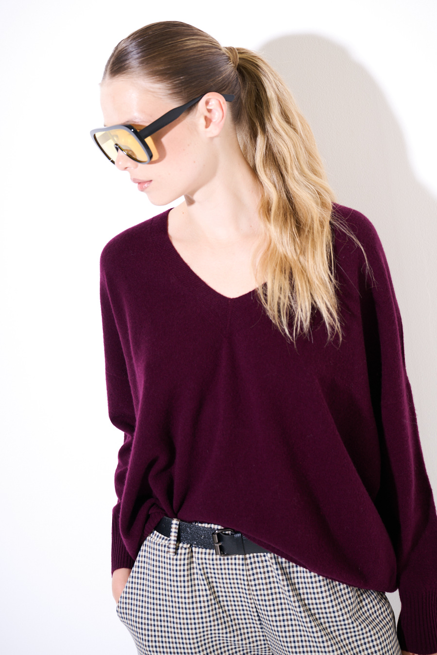 MAGLIA OVER SCOLLO V MISTO CACHEMIRE VINO