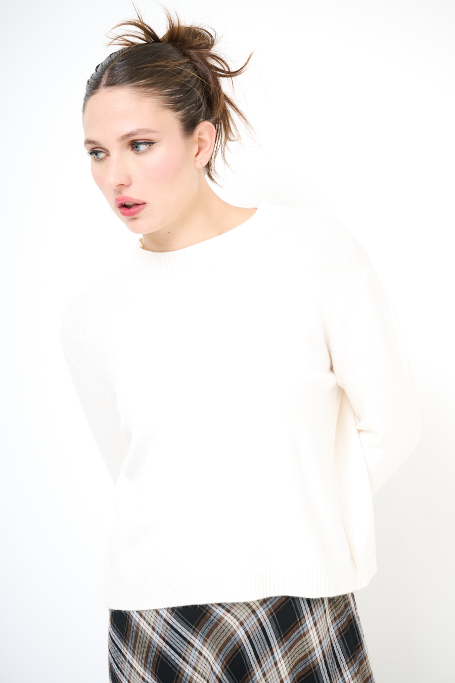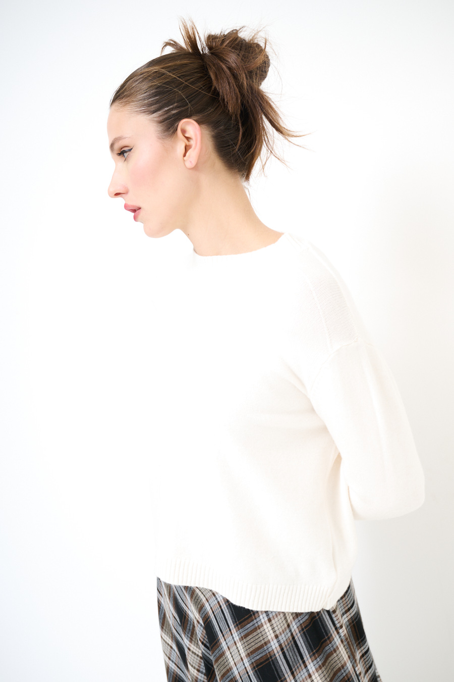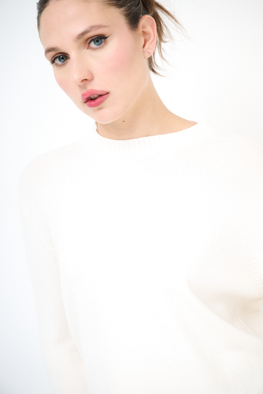 Maglia paricollo a scatolina con profili a coste e taglio raglan su manica.