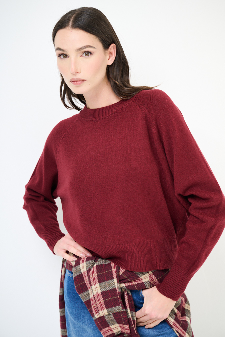 MAGLIA PARICOLLO GIRO MANICA RAGLAN BORDEAUX