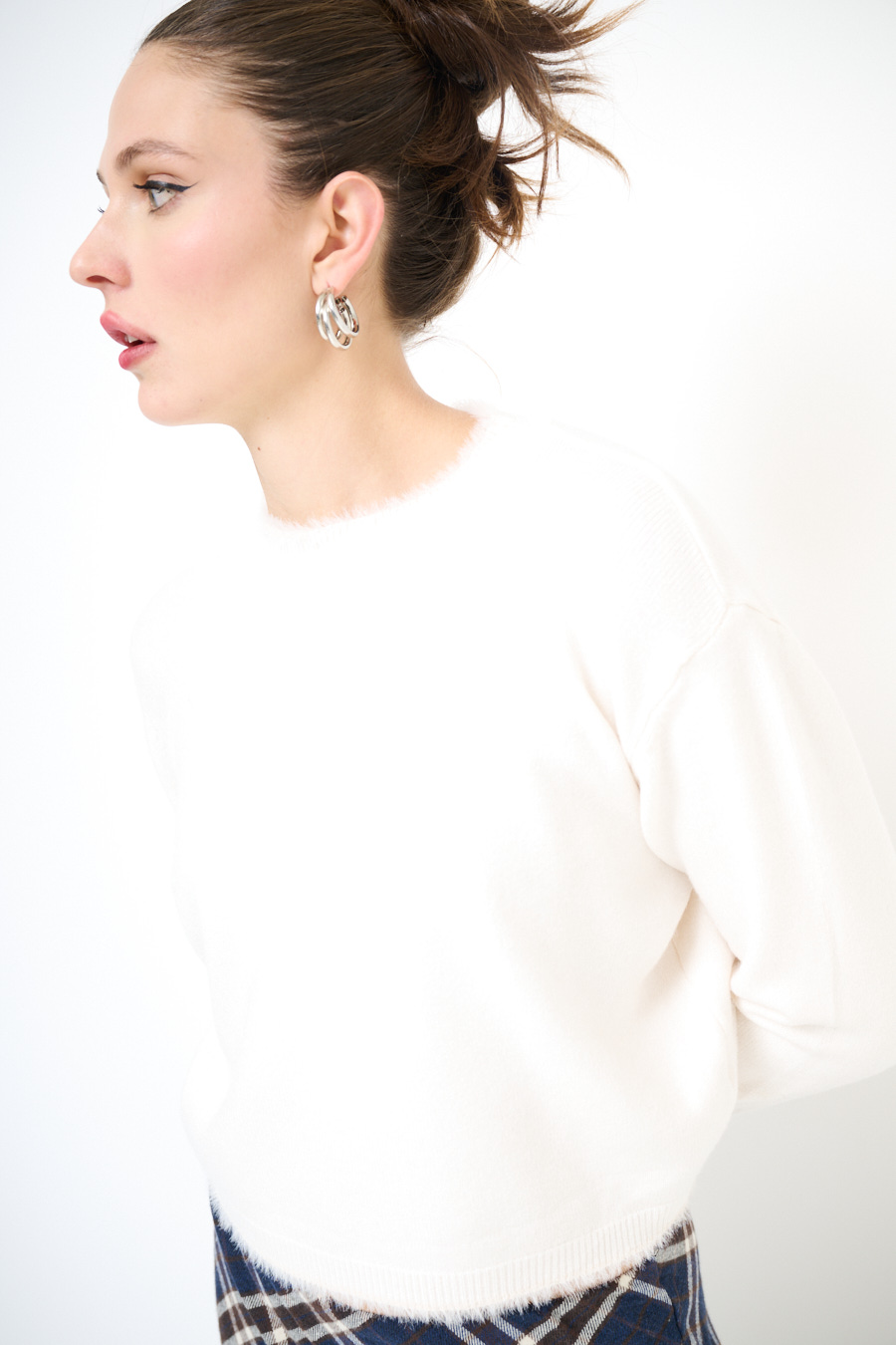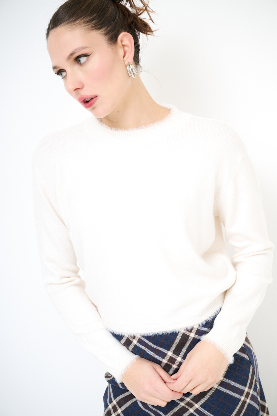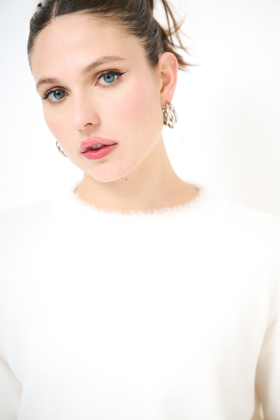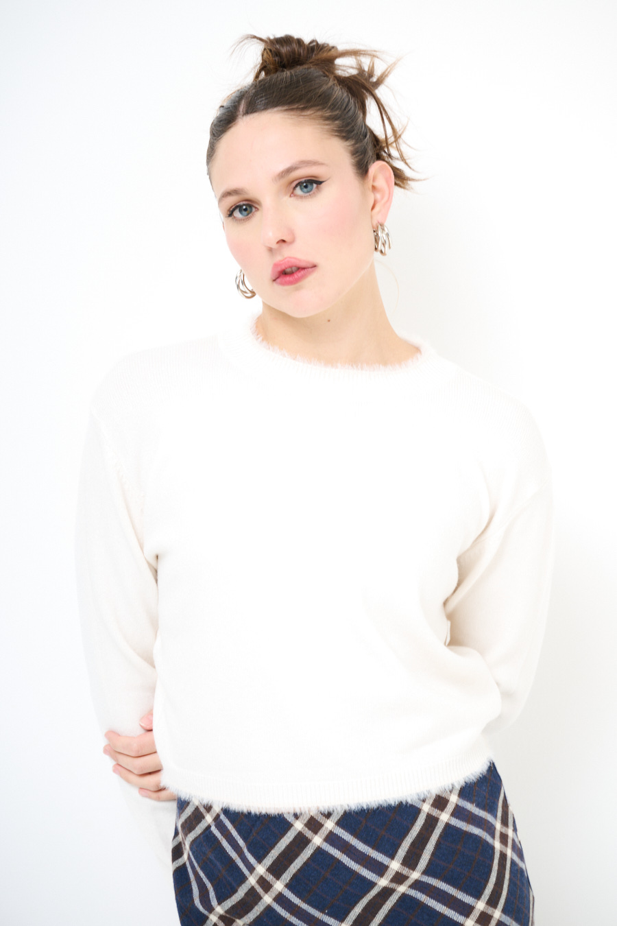 MAGLIA PARICOLLO INSERTI PELLICCIA BURRO