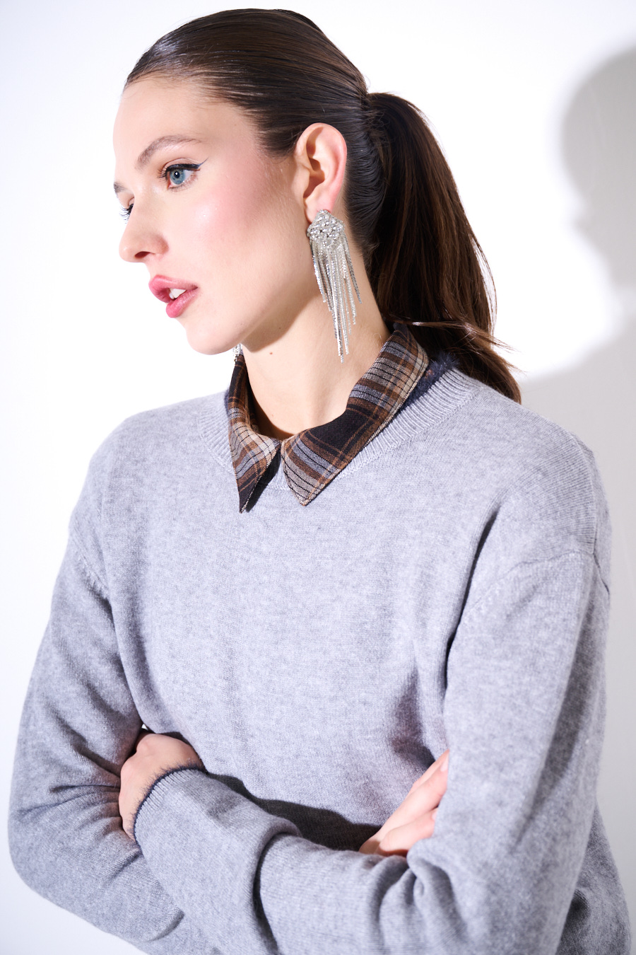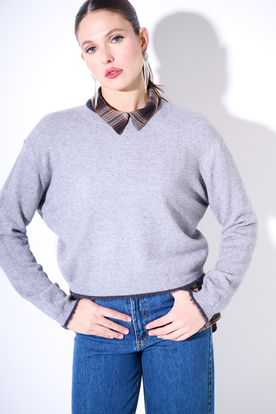 MAGLIA PARICOLLO INSERTI PELLICCIA GRIGIO